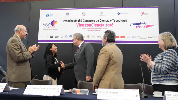 Yhorleni Álvarez Pérez fue felicitada por los senadores integrantes de la comisión de la convocatoria “Vive conCiencia” 2016 (foto: www.comunicacion.senado.gob.mx)