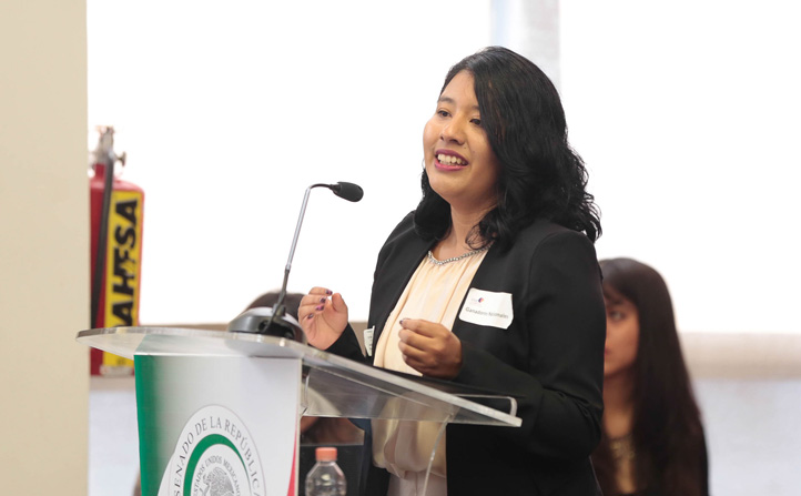 Yhorleni Álvarez durante la ceremonia de premiación en el Senado de la República, el pasado 8 de diciembre (foto: www.comunicacion.senado.gob.mx)