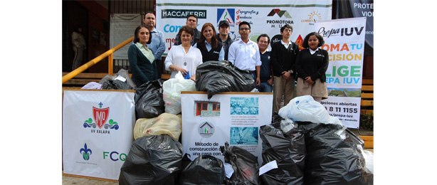 Claudia Peralta.-En apoyo a la iniciativa de estudiantes de la Facultad de Ingeniería Química (FIQ) de la Universidad Veracruzana (UV), quienes realizan el acopio de envases PET para contribuir en la construcción de viviendas emergentes a favor de damnificados de los sismos ocurridos en septiembre, alumnos de nivel bachillerato del Instituto Universitario Veracruzano (IUV) se sumaron a esta acción a través de la donación de una gran cantidad de material plástico.