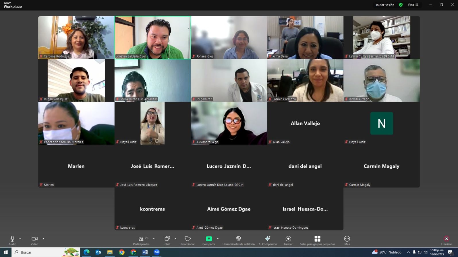 Cierre del taller: Clima organizacional, el día 19 de junio