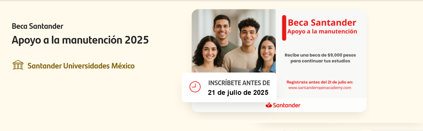 Ya se encuentra abierta la convocatoria Becas Santander Apoyo a la Manutención 2025, dirigida a estudiantes de instituciones pertenecientes a la ANUIES. Este programa otorgará 300 becas de $9,000 pesos como apoyo único para manutención.