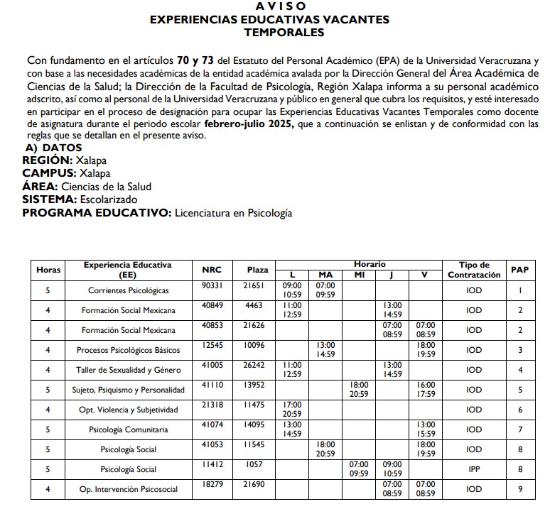 Aviso E.E. vacantes Art 70 y 73 feb-jul 2025