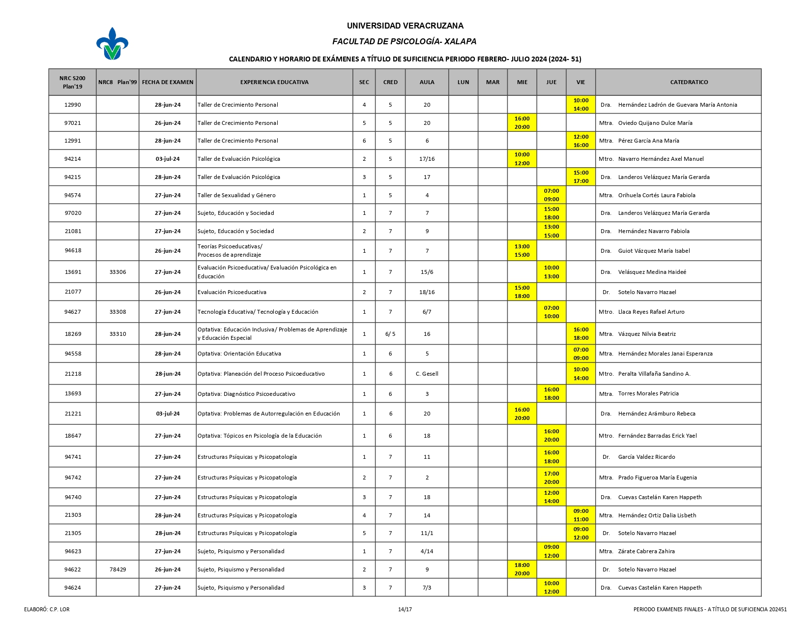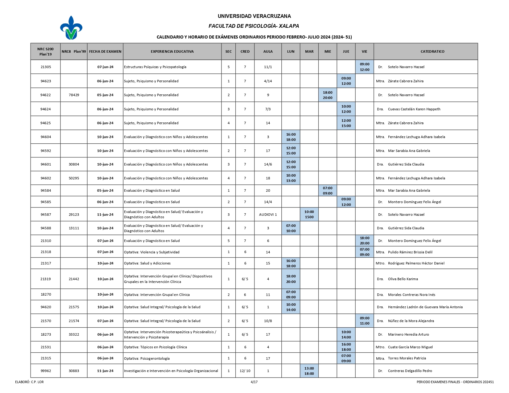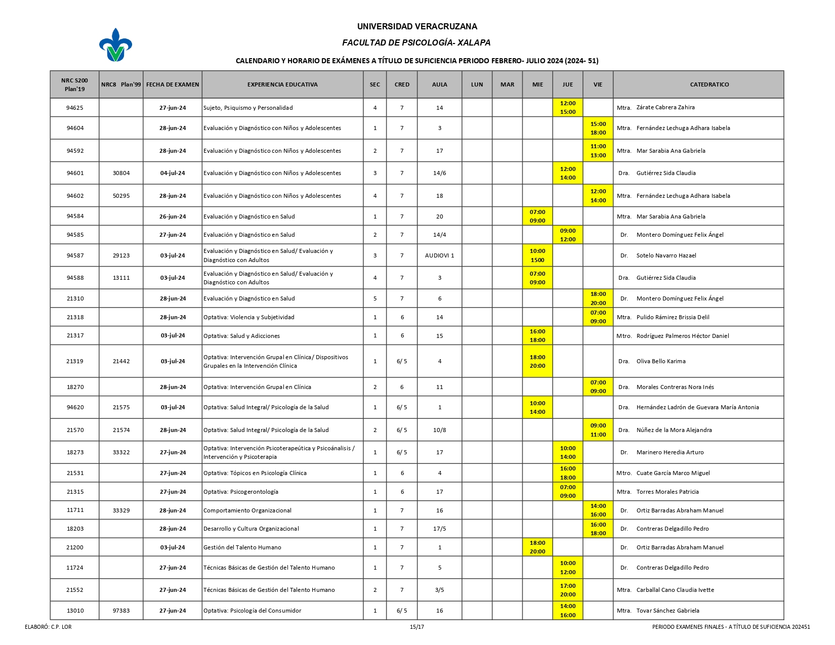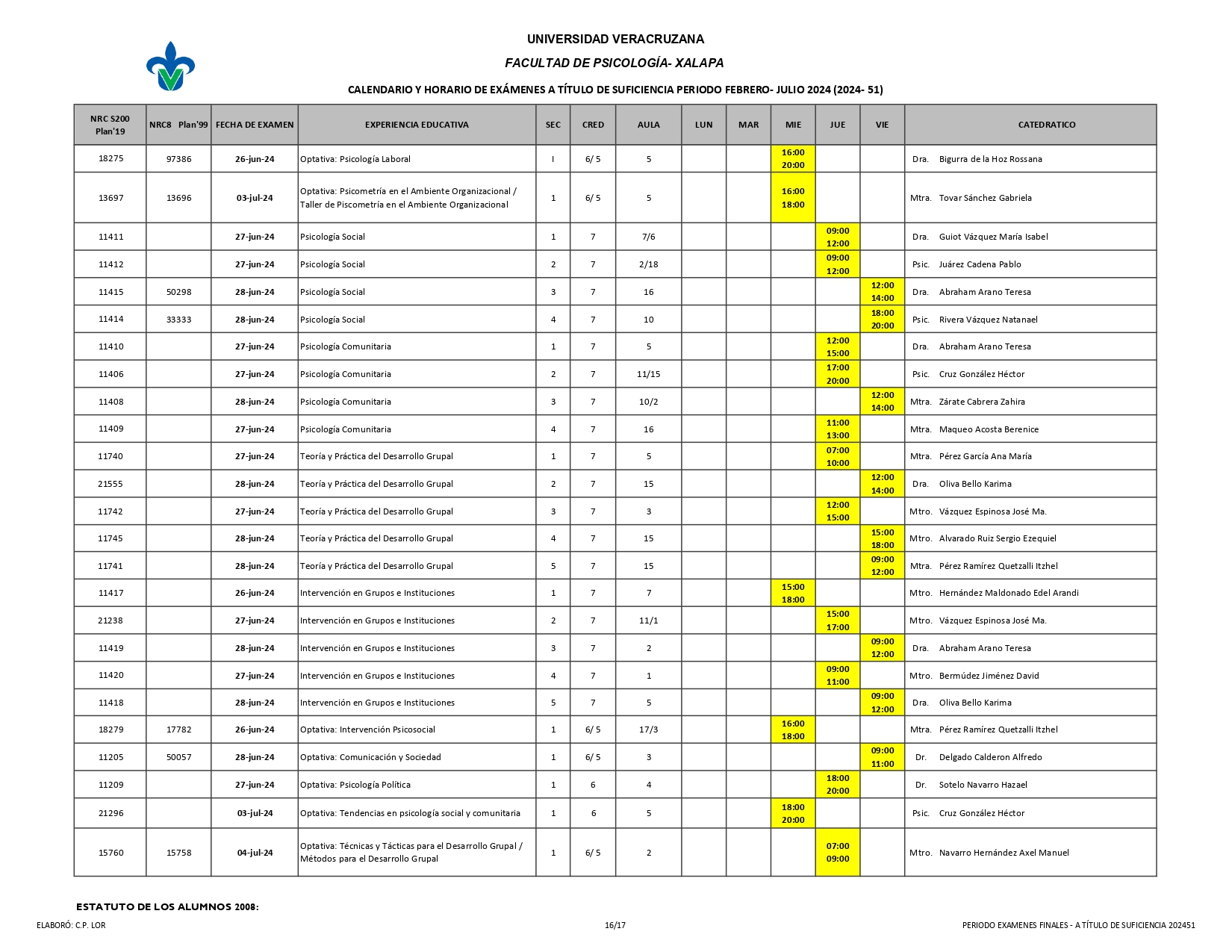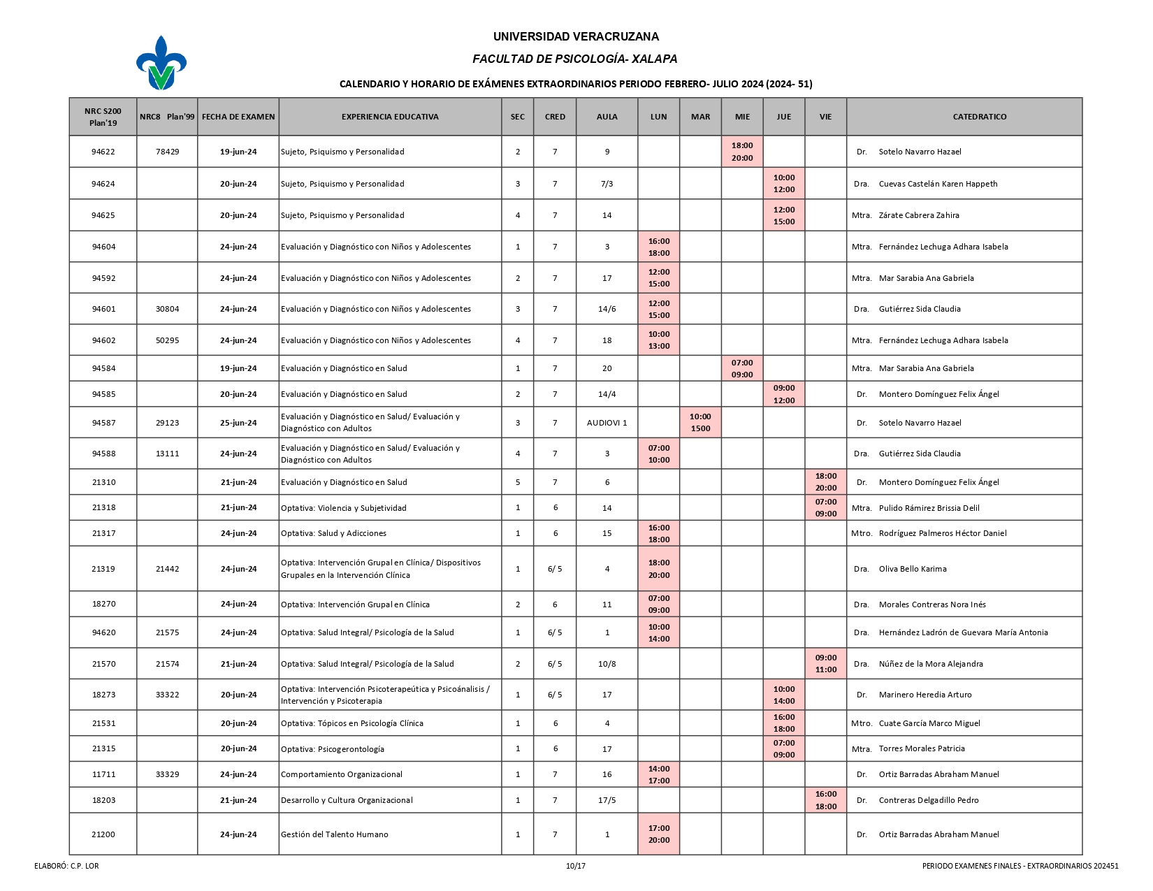 Estimada comunidad de la Facultad de Psicología les compartimos el calendario de exámenes ordinarios, extraordinarios y de título de suficiencia correspondientes al periodo Febrero-Julio 2024