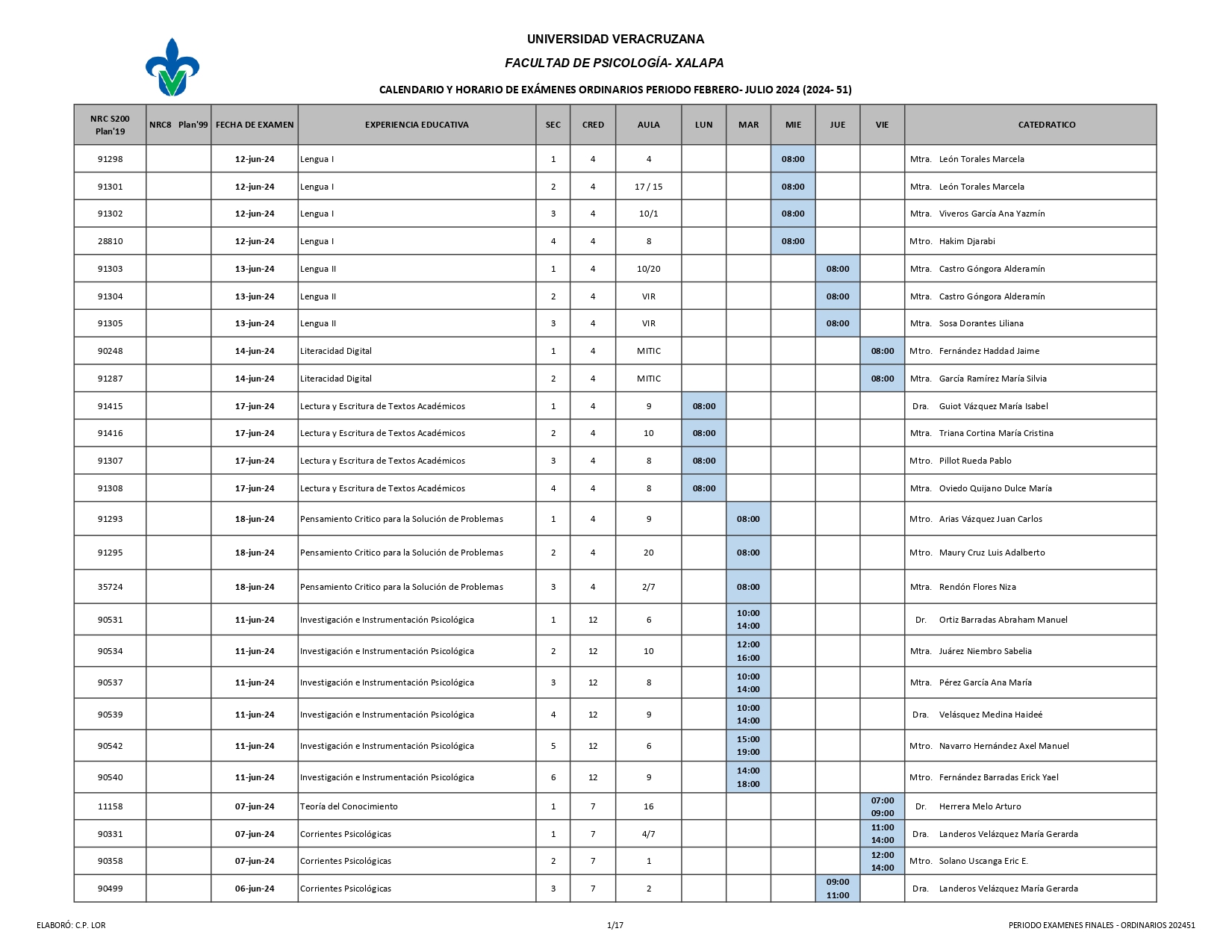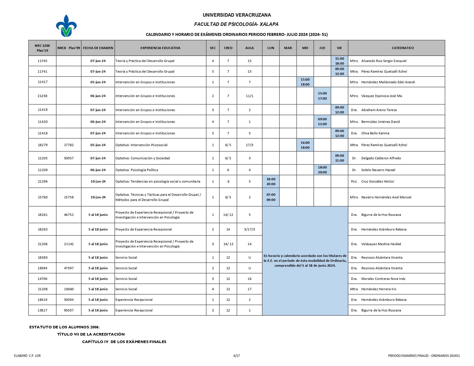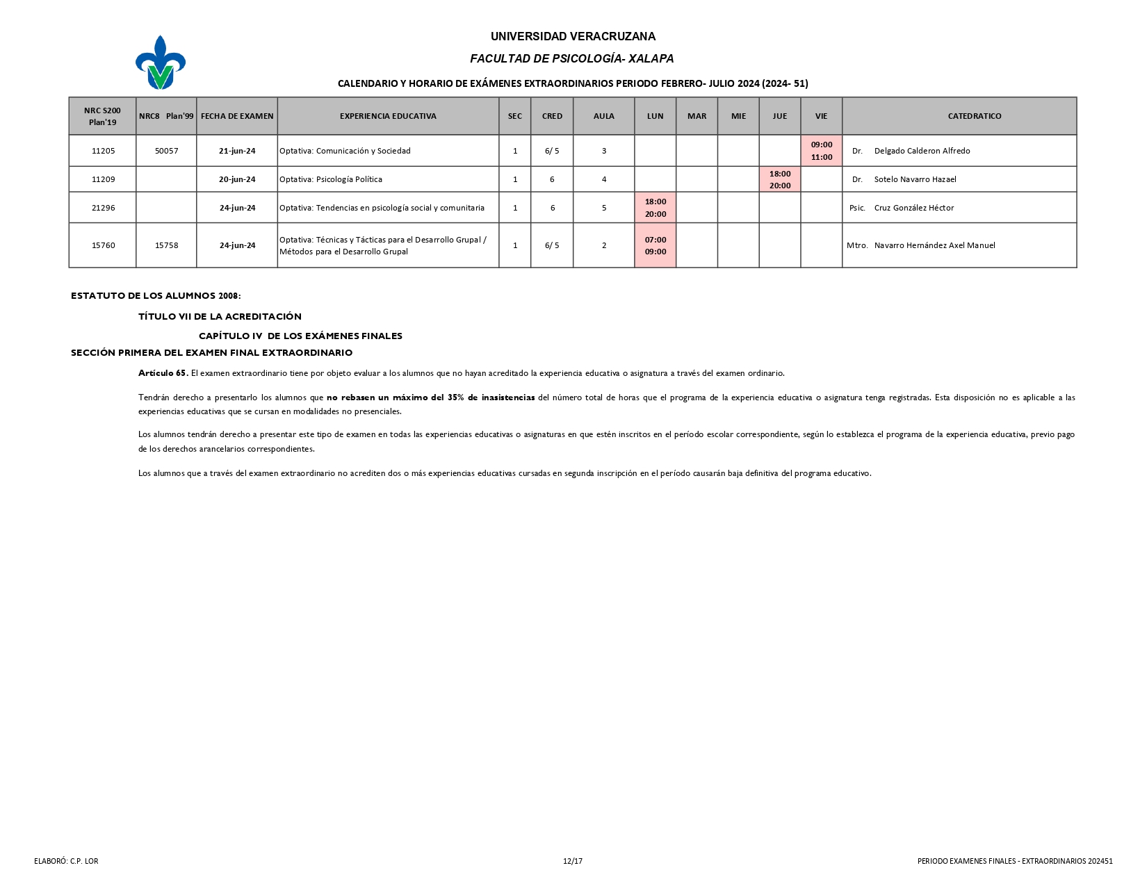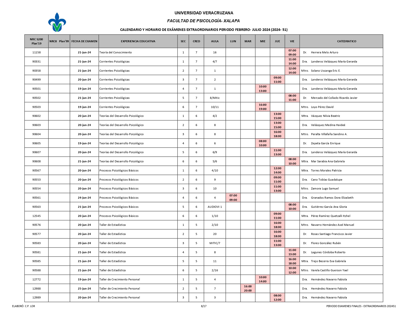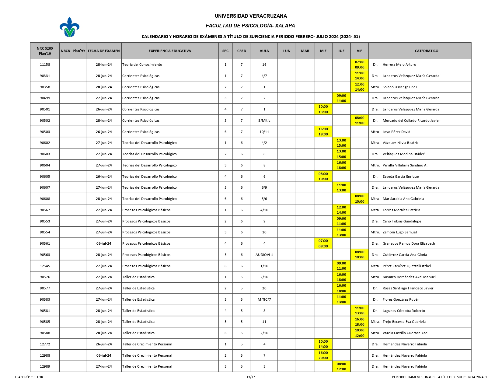 Estimada comunidad de la Facultad de Psicología les compartimos el calendario de exámenes ordinarios, extraordinarios y de título de suficiencia correspondientes al periodo Febrero-Julio 2024