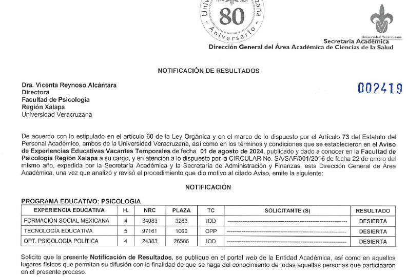 Resultados Aviso 1, Art 73 EE vacantes agosto 2024