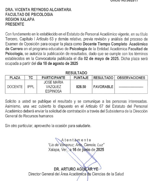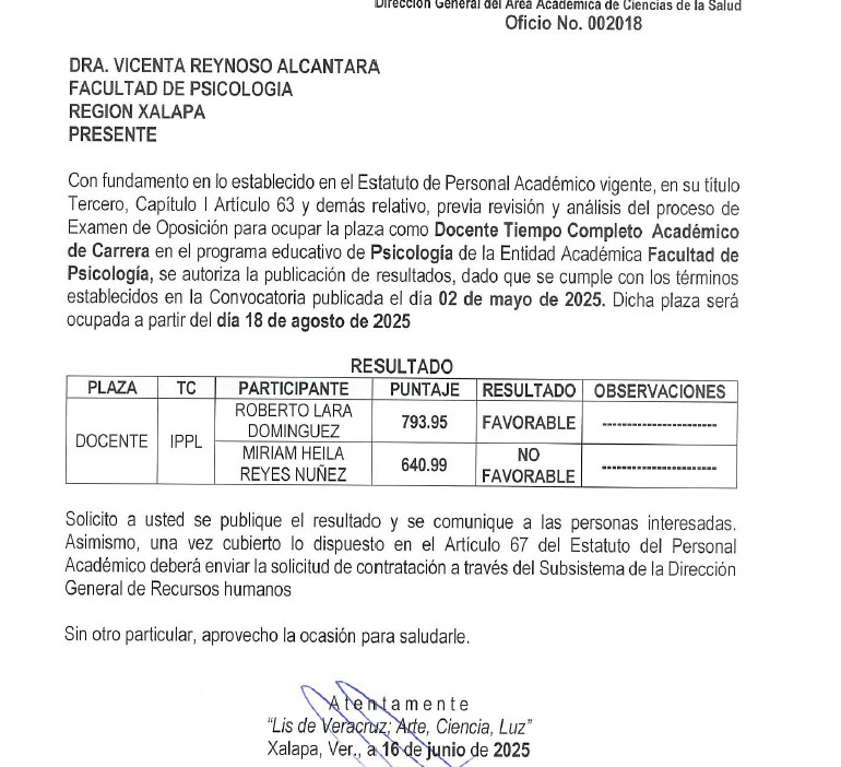 Resultados convocatoria CTC202601-0001 Notificación de resultados Plaza AFBG Plaza Perfil organizacional
