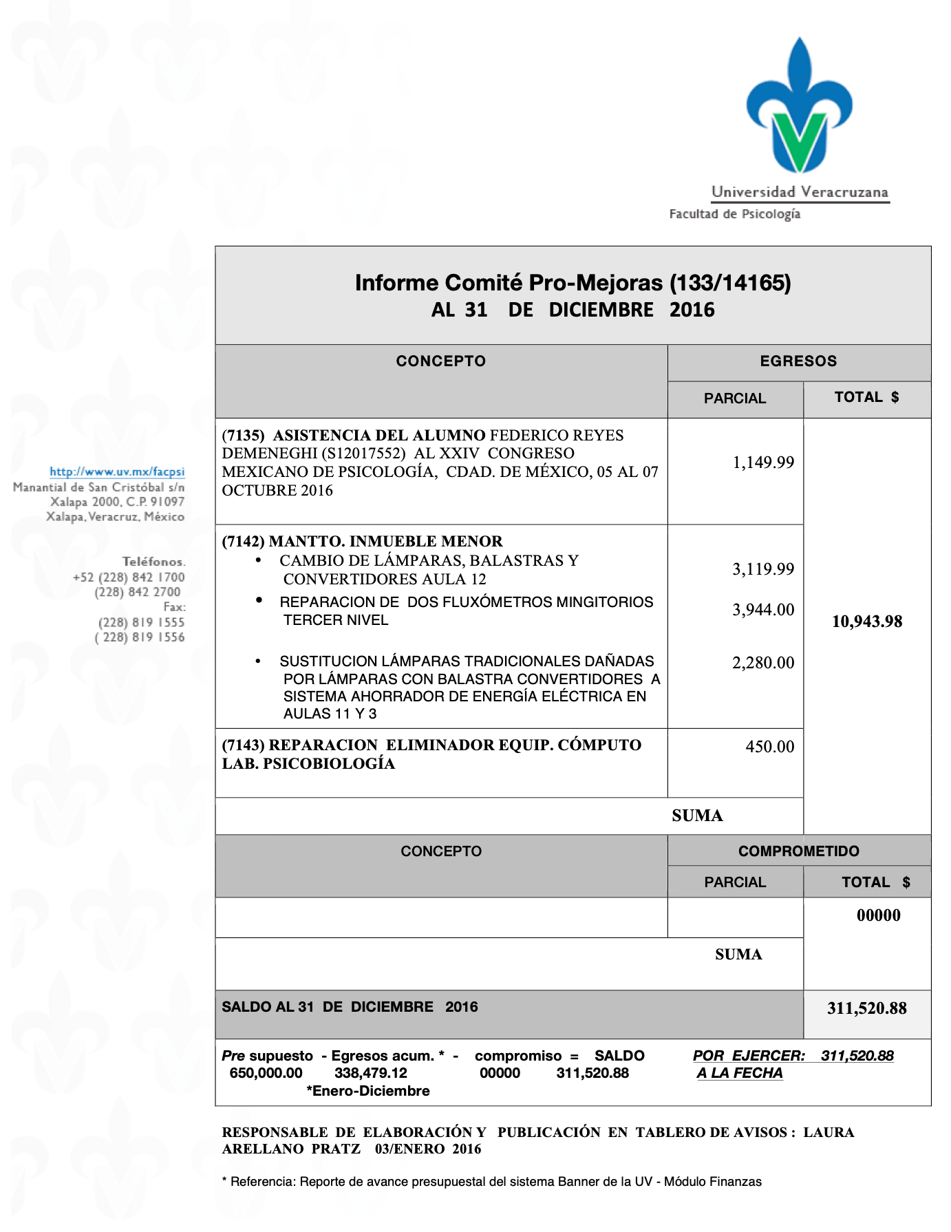 En apego al artículo 16 del Reglamento de Ingresos y Egresos, así como del artículo 13 de la Ley Orgánica de la Universidad Veracruzana, en donde se definen los ingresos y el patrimonio de nuestra institución, y en concordancia con la obligación de rendición de cuentas, transparencia y uso correcto de los recursos públicos a que estamos obligados los titulares de entidades de nuestra Universidad Veracruzana, informo a ustedes sobre la aplicación que tuvieron sus aportaciones a partir del inicio de esta Administración en el 2012.