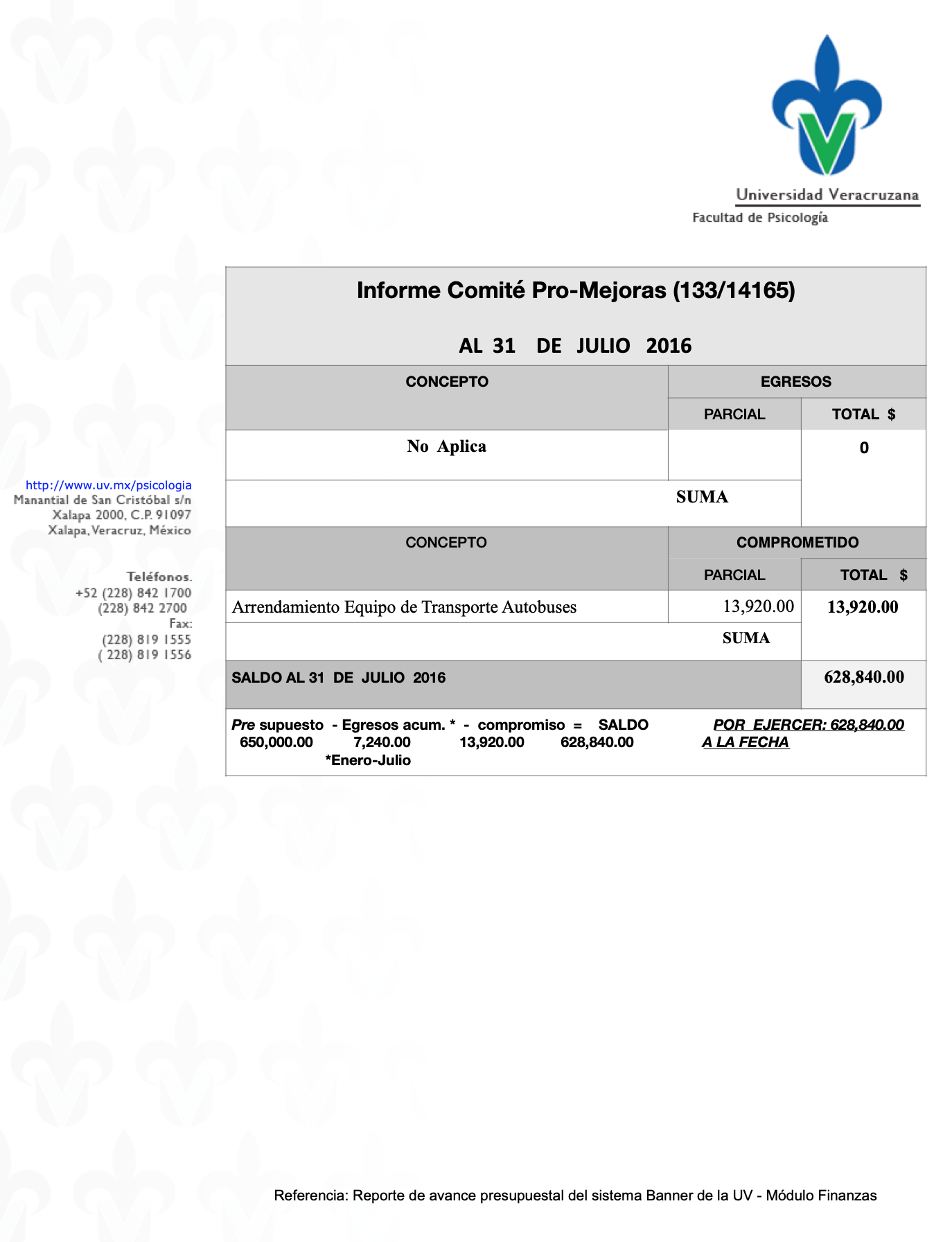 En apego al artículo 16 del Reglamento de Ingresos y Egresos, así como del artículo 13 de la Ley Orgánica de la Universidad Veracruzana, en donde se definen los ingresos y el patrimonio de nuestra institución, y en concordancia con la obligación de rendición de cuentas, transparencia y uso correcto de los recursos públicos a que estamos obligados los titulares de entidades de nuestra Universidad Veracruzana, informo a ustedes sobre la aplicación que tuvieron sus aportaciones a partir del inicio de esta Administración en el 2012.