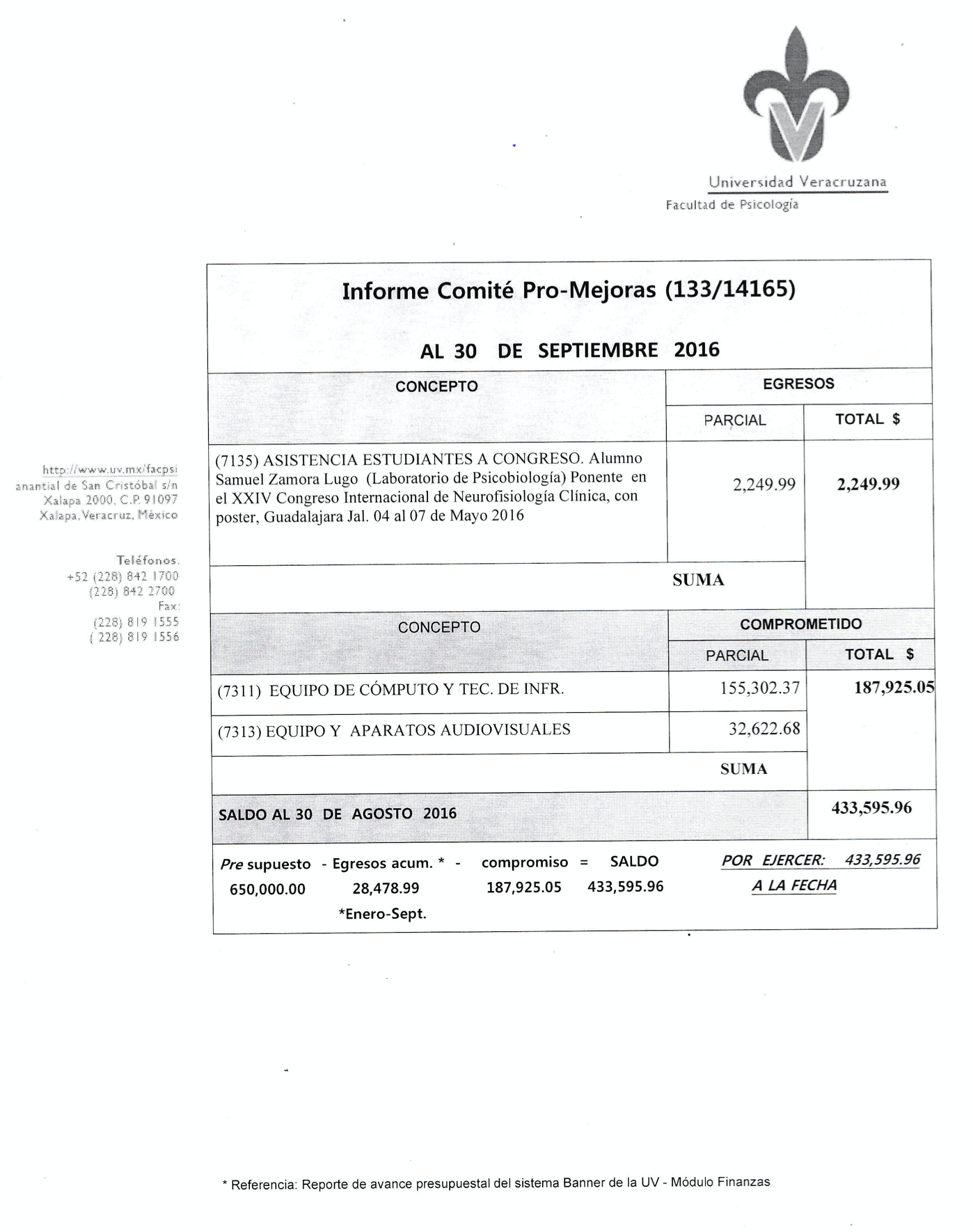 En apego al artículo 16 del Reglamento de Ingresos y Egresos, así como del artículo 13 de la Ley Orgánica de la Universidad Veracruzana, en donde se definen los ingresos y el patrimonio de nuestra institución, y en concordancia con la obligación de rendición de cuentas, transparencia y uso correcto de los recursos públicos a que estamos obligados los titulares de entidades de nuestra Universidad Veracruzana, informo a ustedes sobre la aplicación que tuvieron sus aportaciones a partir del inicio de esta Administración en el 2012.