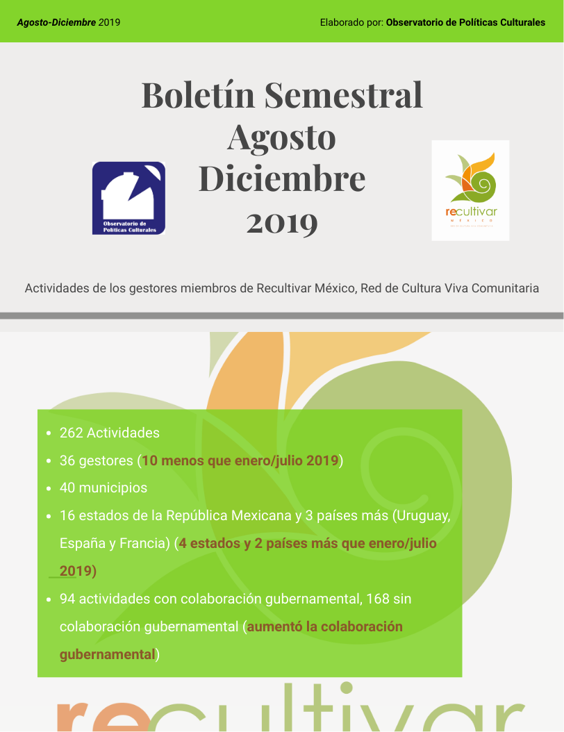 Recultivar México 2019. Programa de Desarrollo Cultural
