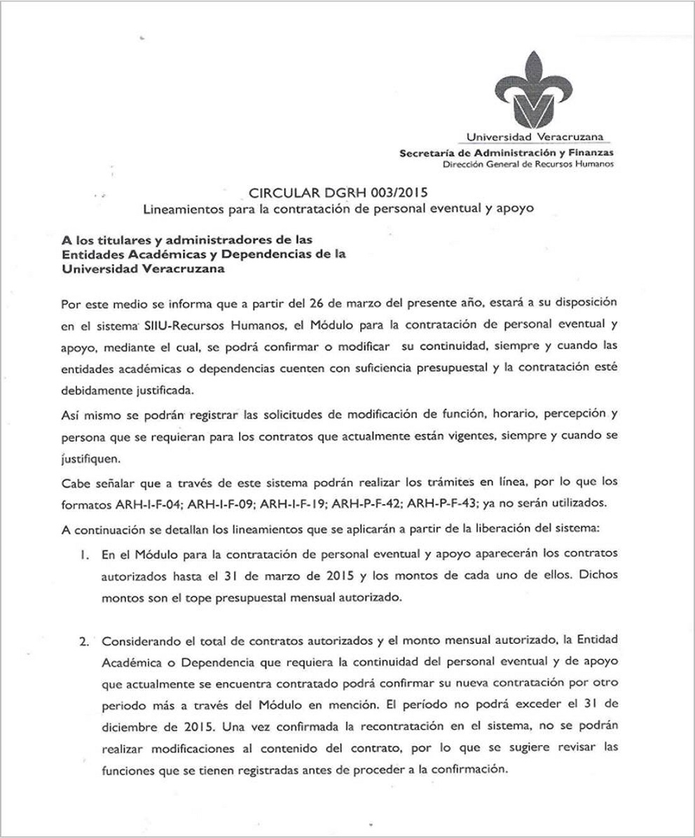 > Lineamientos para la contratación de personal eventual y apoyo