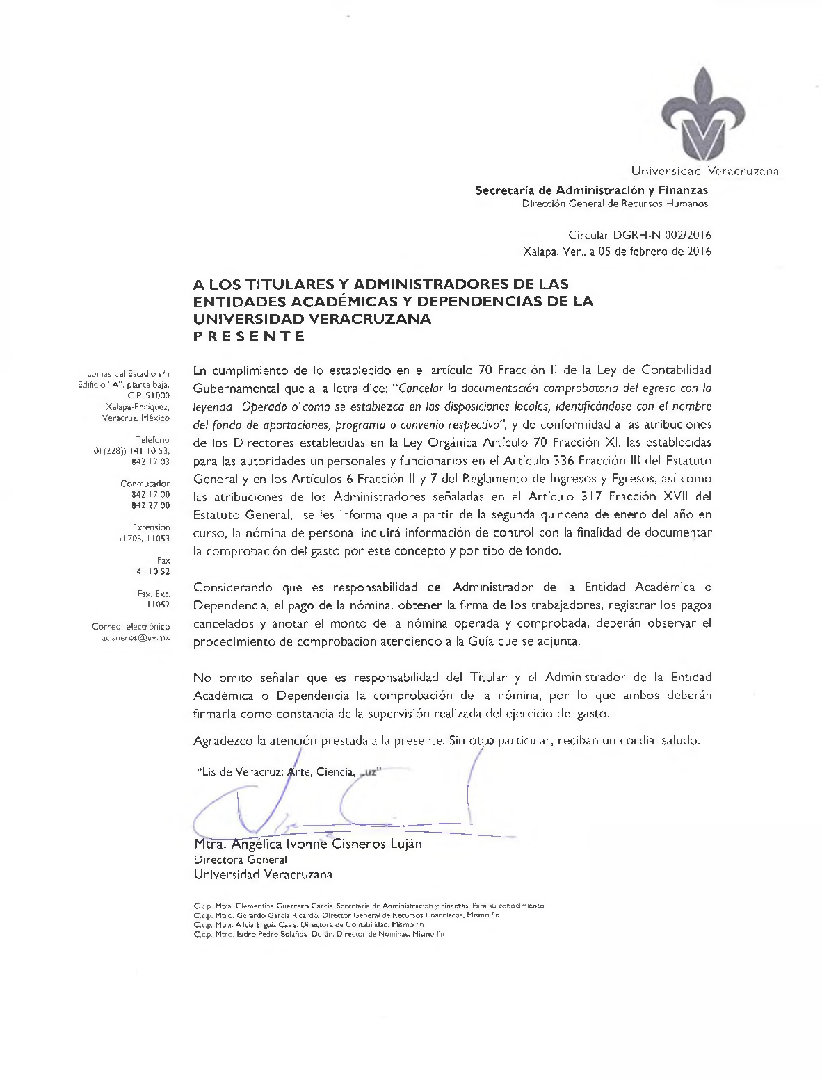 Circular DGRH-N 002/2016 Relativa a la Nómina de Personal, información para su control y procedimiento de comprobación
