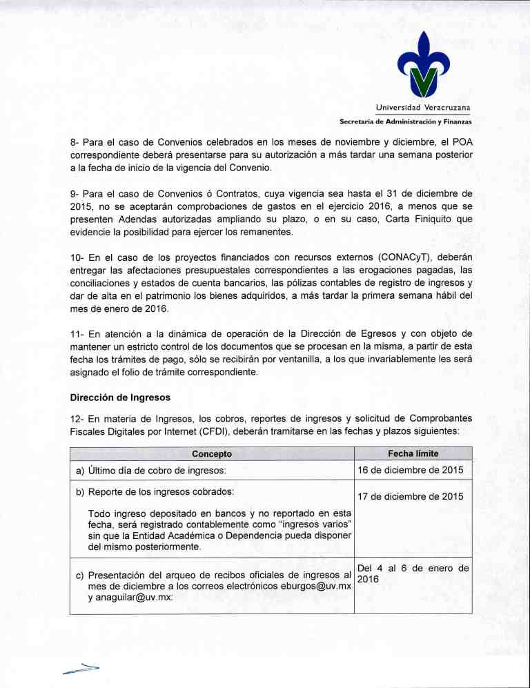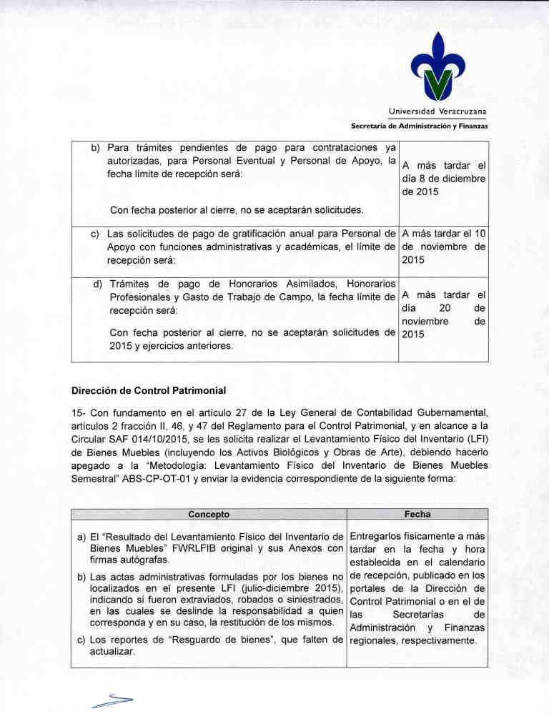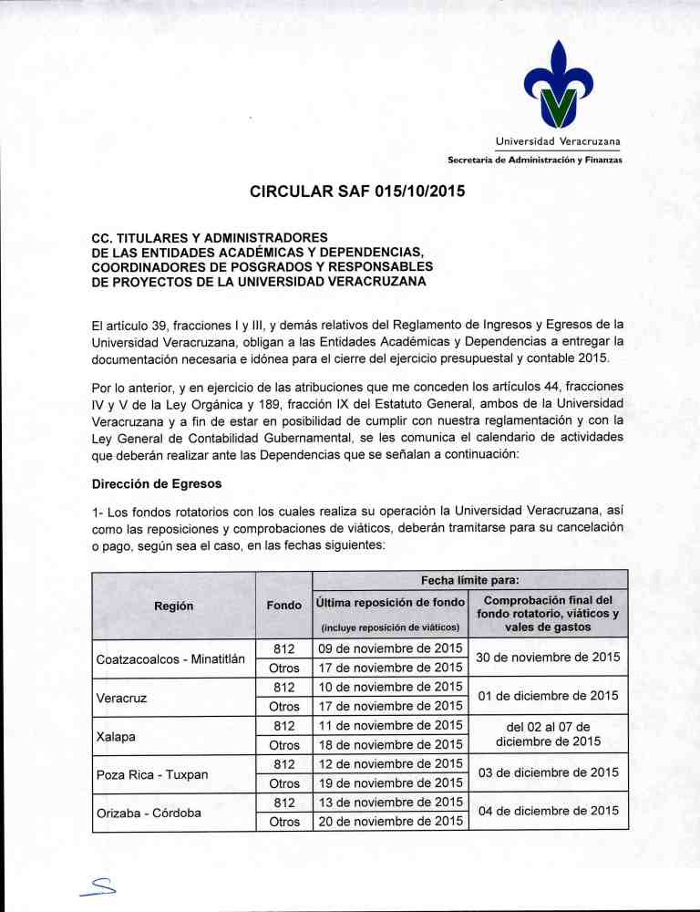 Circular SAF 015/10/2015 Calendario de actividades para el cierre de Ejercicio Presupuestal y Contable 2015