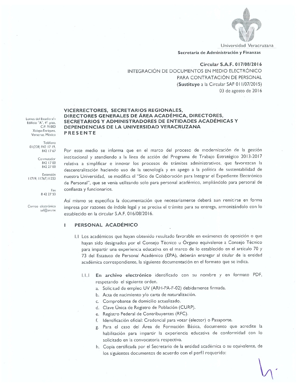 Circular SAF 017/08/2016 Integración de documentos en medio electrónico para contratación de personal Imprimir Circular 1 2 3 4 5