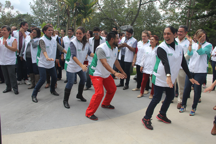 En la explanada de la Rectoría se realizó la primera activación física de la campaña y hubo demostración de actividades físicas y de desarrollo cultural que están a disposición del personal de la UV: clases de danzón, salsa, gimnasia laboral y rítmico-musical; incluso, hubo demostración por parte de uno de los gimnasios con los que la institución estableció convenios de colaboración para los efectos de esta campaña.