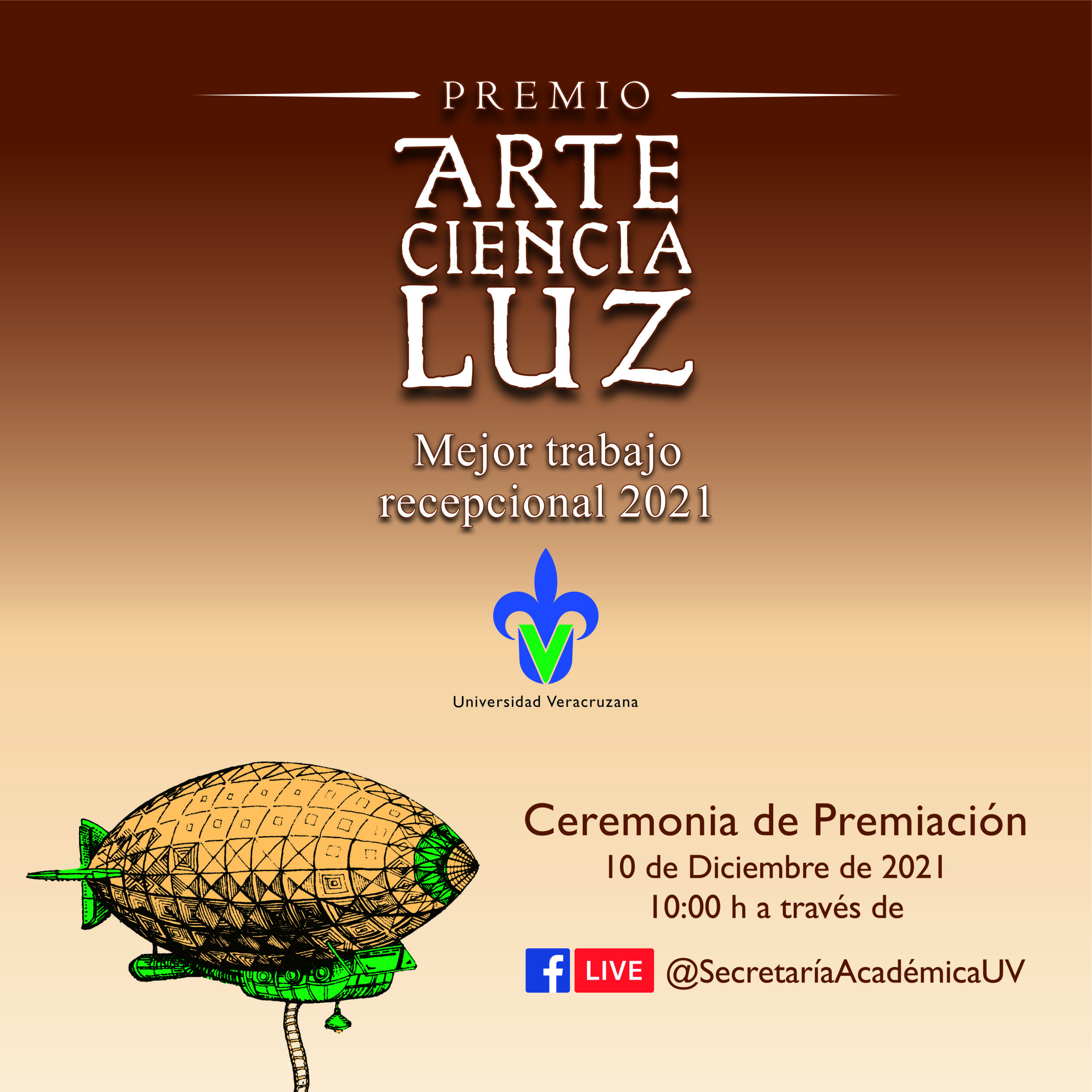 Ceremonia de premiación ‘Arte, Ciencia, Luz’ 10 de diciembre de 2021 Página de Facebook de la Secretaría Académica Canal de Youtube de Tele UV