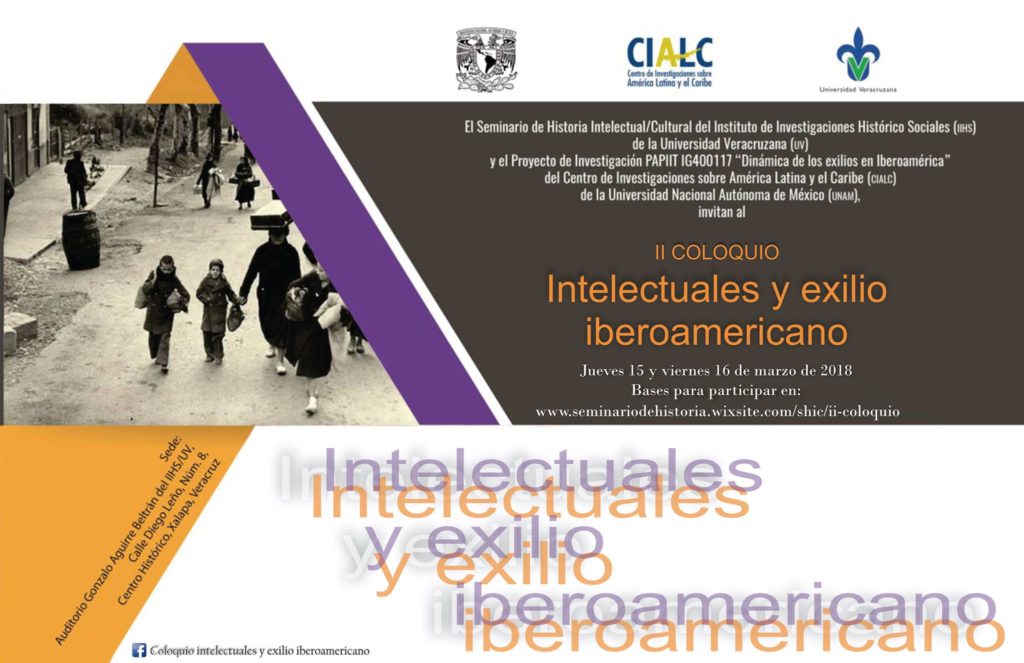 El Seminario de Historia Intelectual / Historia Cultural del Instituto de Investigaciones Histórico- Sociales de la Universidad Veracruzana y el Proyecto de Investigación PAPIIT IG400117 “Dinámica de los exilios en Iberoamérica” del Centro de Investigaciones sobre América Latina y el Caribe de la Universidad Nacional Autónoma de México convocan a la comunidad académica, profesores, investigadores y estudiantes tanto de licenciatura (con aval académico y en desarrollo de tesis) como de posgrado al: