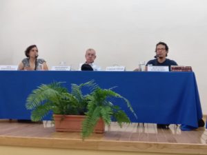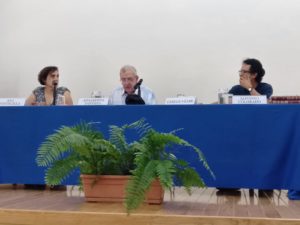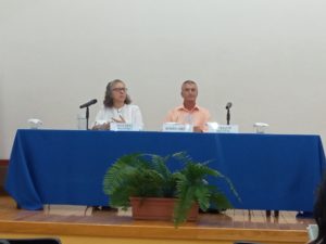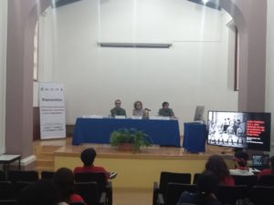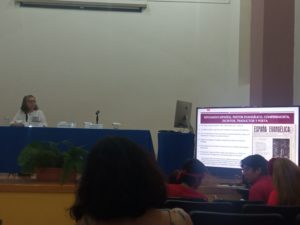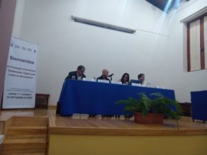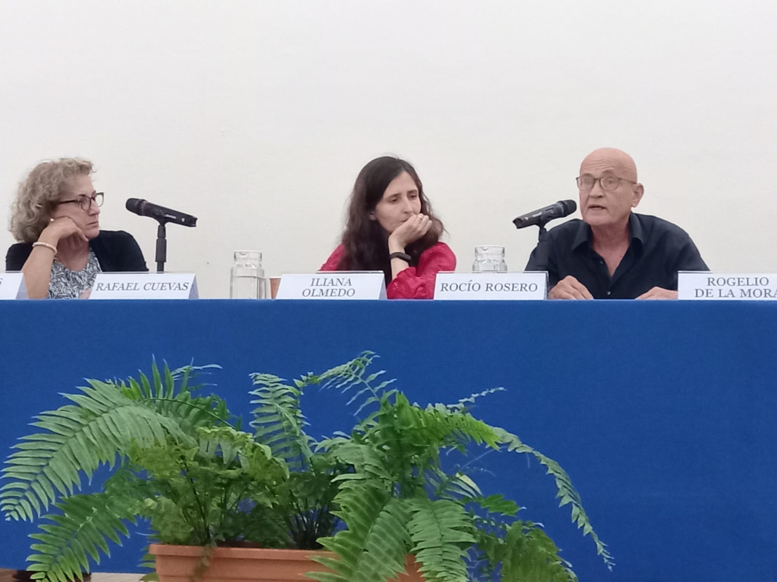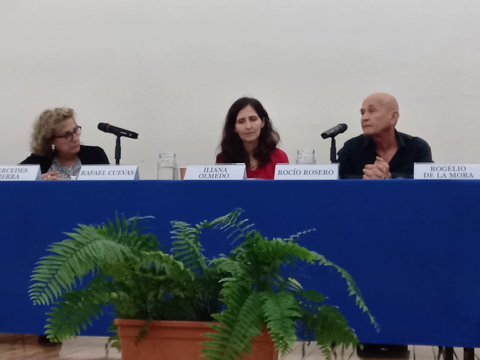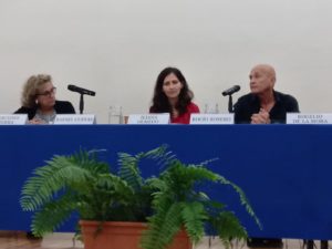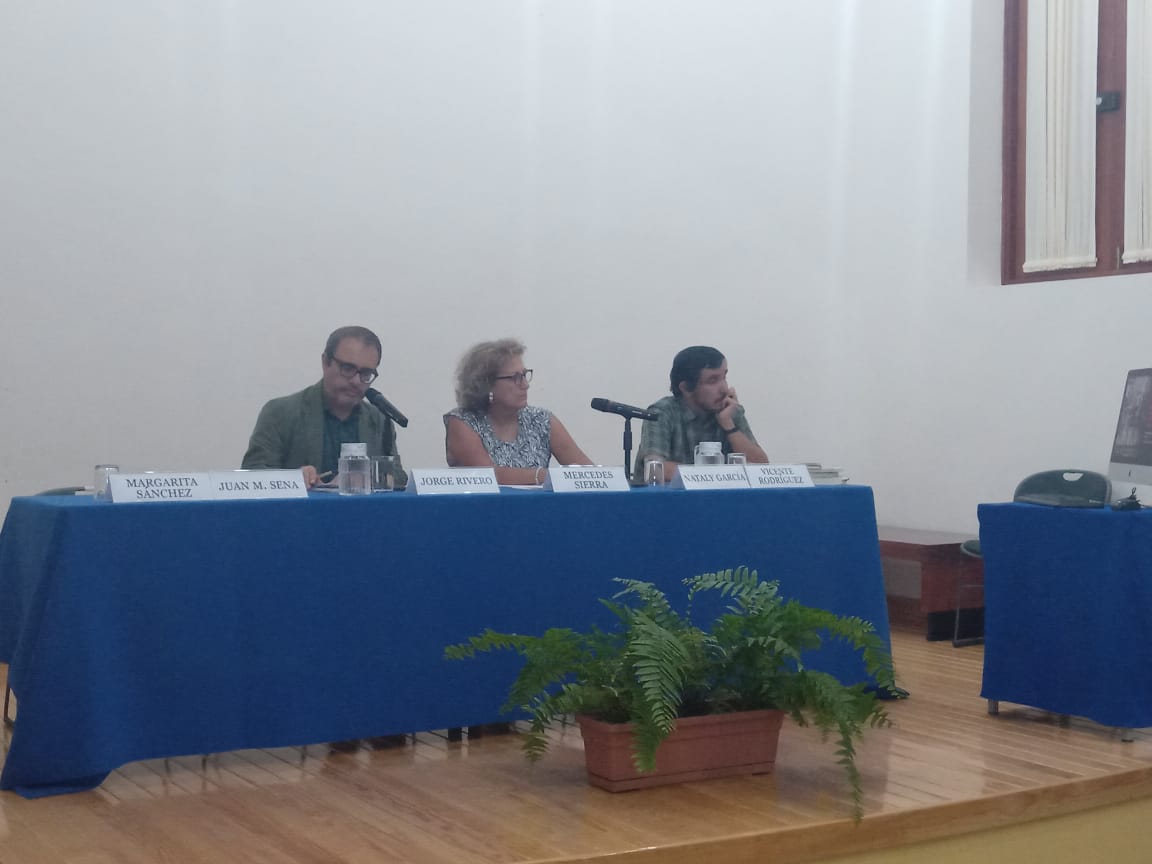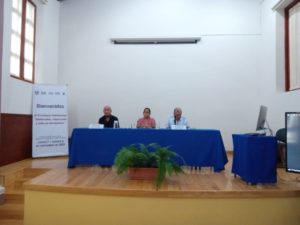 - De izquierda a derecha: Moderador Dr. Jorge Rivero, ponentes Dra. Mercedes Sierra y Lic. Vicente Rodríguez
