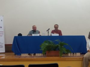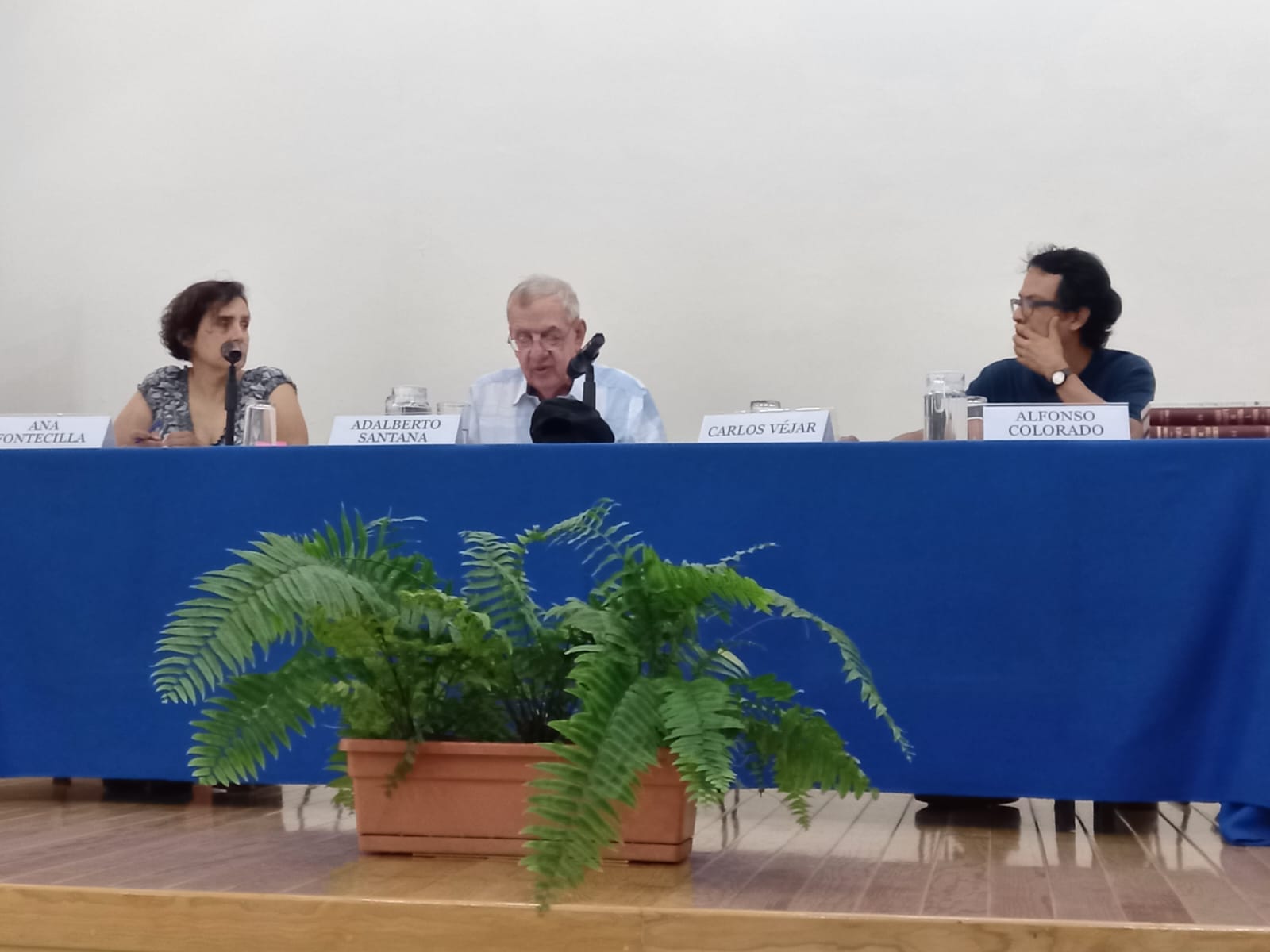 - De izquierda a derecha: Moderadora Dra. Ana Fontecilla, ponentes Dr. Adalberto Santana y Dr. Alfonso Colorado