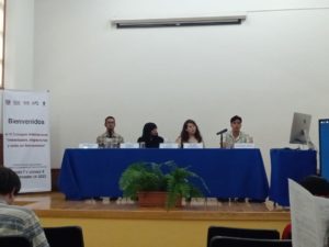- De izquierda a derecha: Moderadora Dra. Mercedes Sierra, ponentes Dra. Iliana Olmedo y Dr. Rogelio de la Mora