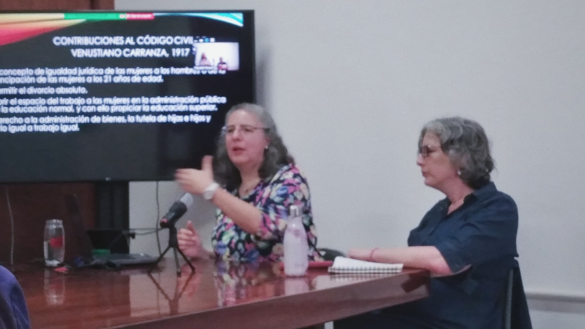 Sobre la sesión El trabajo de la Dra. Mayabel Castro presenta un panorama socio-histórico en el México Moderno de 1916. Navega brevemente desde el siglo XVI al XIV para brindar un contexto social, cultural, económico y político de las mujeres en ese tiempo. Detalla los problemas de acceso a bienes, espacio o atributos denegados; añade cosmovisiones importantes sobre la construcción femenina de ese momento, una lucha diaria para hacerse presentes en un país patriarcal. Su exposición permite adentrarnos poco a poco a las problemáticas que las mujeres están presentando en la República restaurada, esta temporalidad brinda perspectivas interesantes para comprender la construcción de una identidad feminista en años posteriores. |