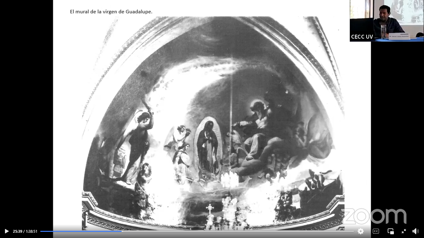Sobre la sesión El Dr. José Argüelles expresa la importancia de los análisis sociohistóricos y culturales para comprender la perspectiva estética y de Historia del arte, para conocer los procesos que dan vida a estas obras. El siguiente trabajo tiene como motivo el proceso de cambio cultural en la localidad de Jiquilpan, Michoacán. A partir del uso de las imágenes murales, en especial de la obra de José Clemente Orozco. En dicha investigación se observan imágenes sustanciales que fundamentan el trabajo artístico del autor, al igual que la cosmovisión de ese contexto. |