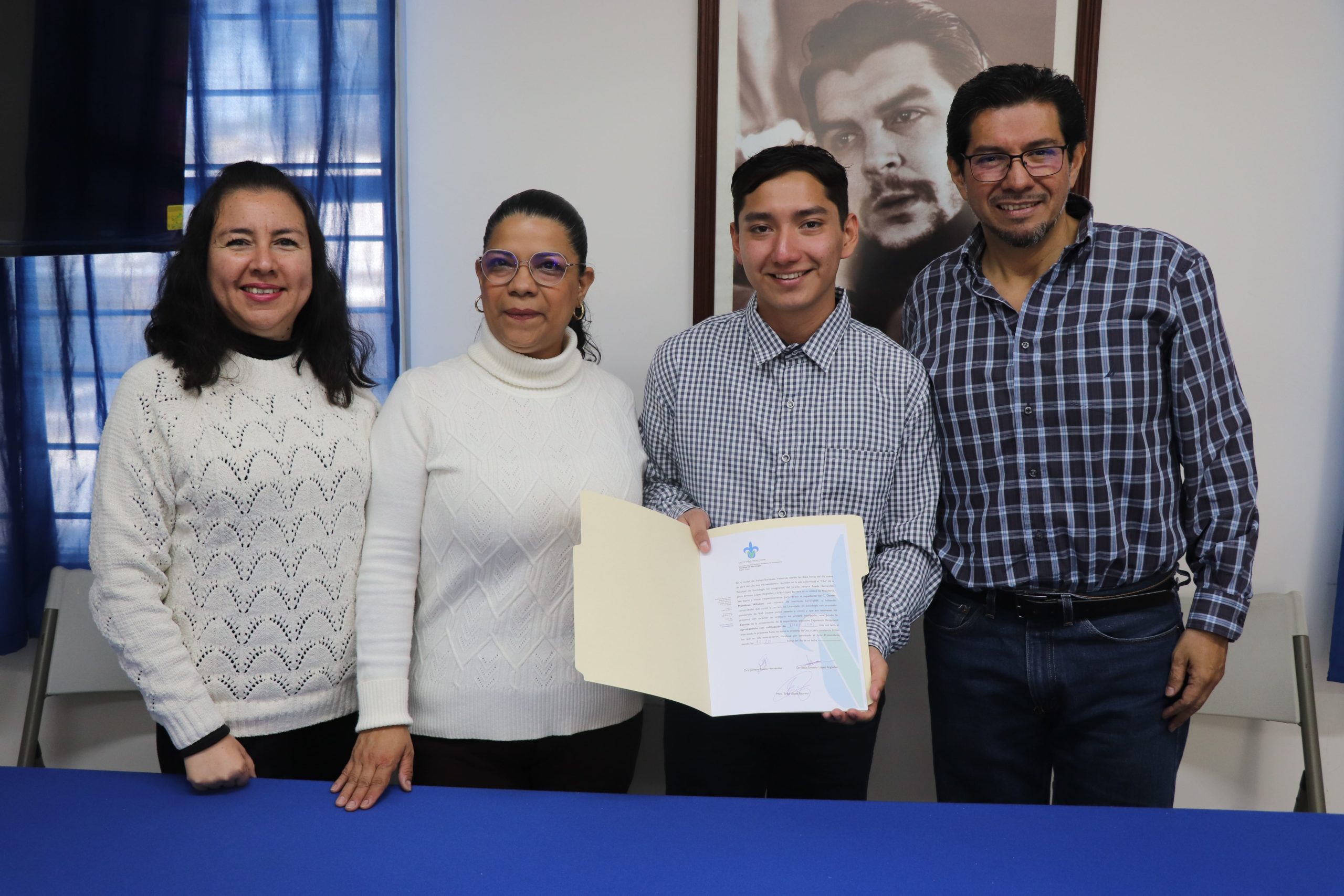 La Facultad de Sociología felicita a Daniel Mendoza Alfonso, por haber presentado el día 09 de abril de 2025 su examen de titulación en modalidad de Promedio, llevado a cabo en la sala audiovisual el “Che” de la Facultad de Sociología. El jurado estuvo integrado por: Presidenta, Dra. Jemyna Rueda Hernández; Secretario, Dr. Jesús Ernesto López Argüelles; Vocal, Mtra. Erika López Barrera.