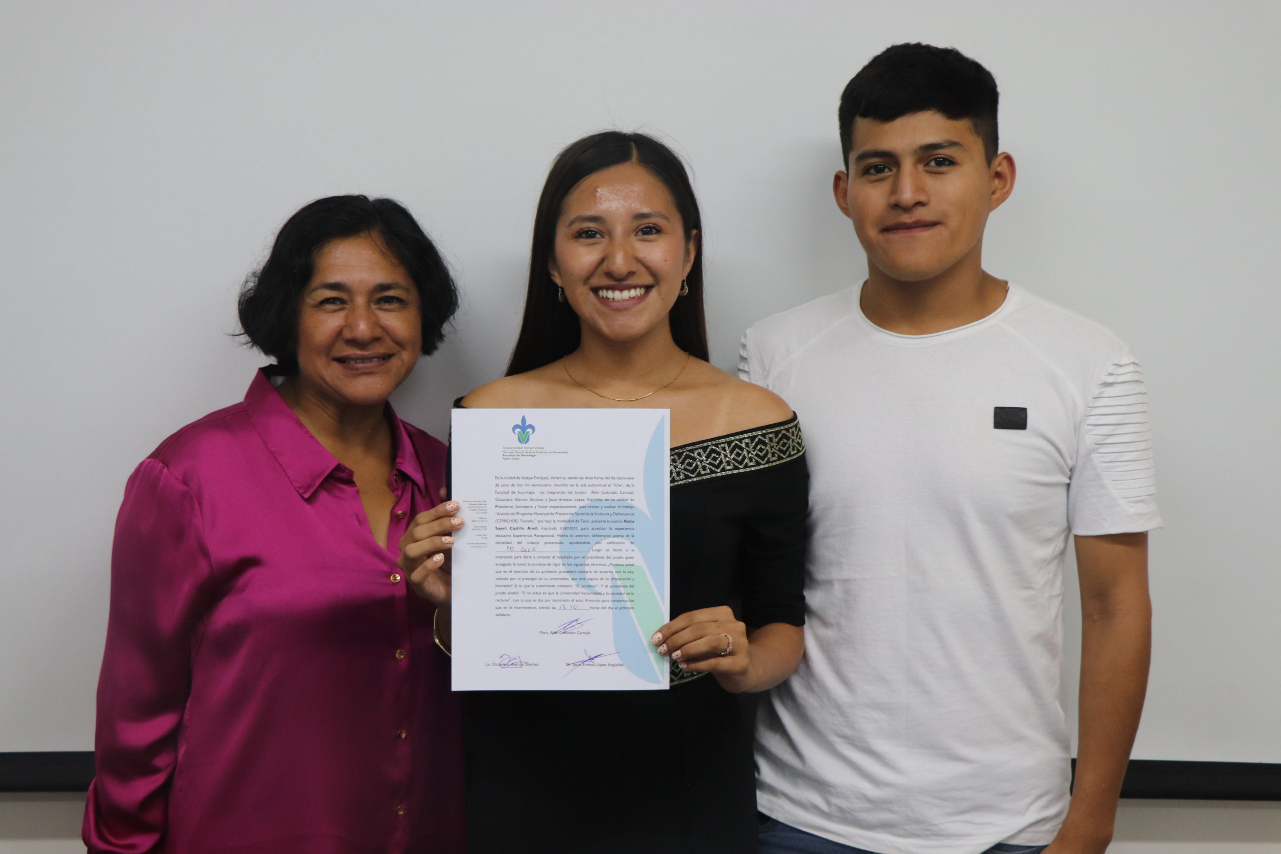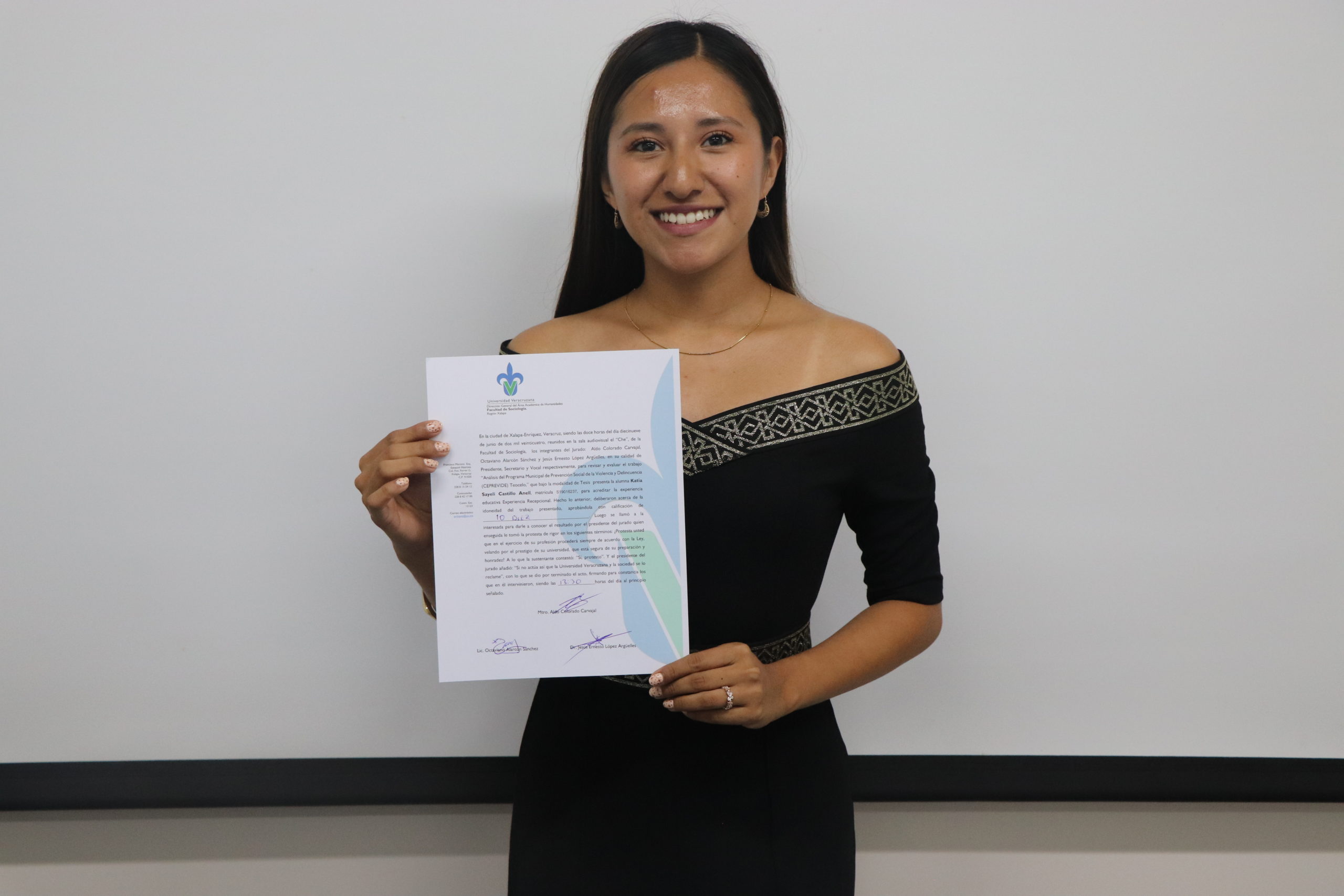 La Facultad de Sociología felicita a Katia Sayeli Castillo Anell de la generación 2019, por haber presentado el día 19 de junio de 2024 su examen de titulación en modalidad de Tesis, titulada «Análisis del Programa Municipal de Prevención Social de la Violencia y Delincuencia (CEPREVIDE) Teocelo», presentada en la sala audiovisual el “Che” de la Facultad de Sociología. El jurado estuvo integrado por: Presidente, Mtro. Aldo Colorado Carvajal; Secretario, Lic. Octaviano Alarcón Sánchez; Vocal, Dr. Jesús Ernesto López Argüelles.