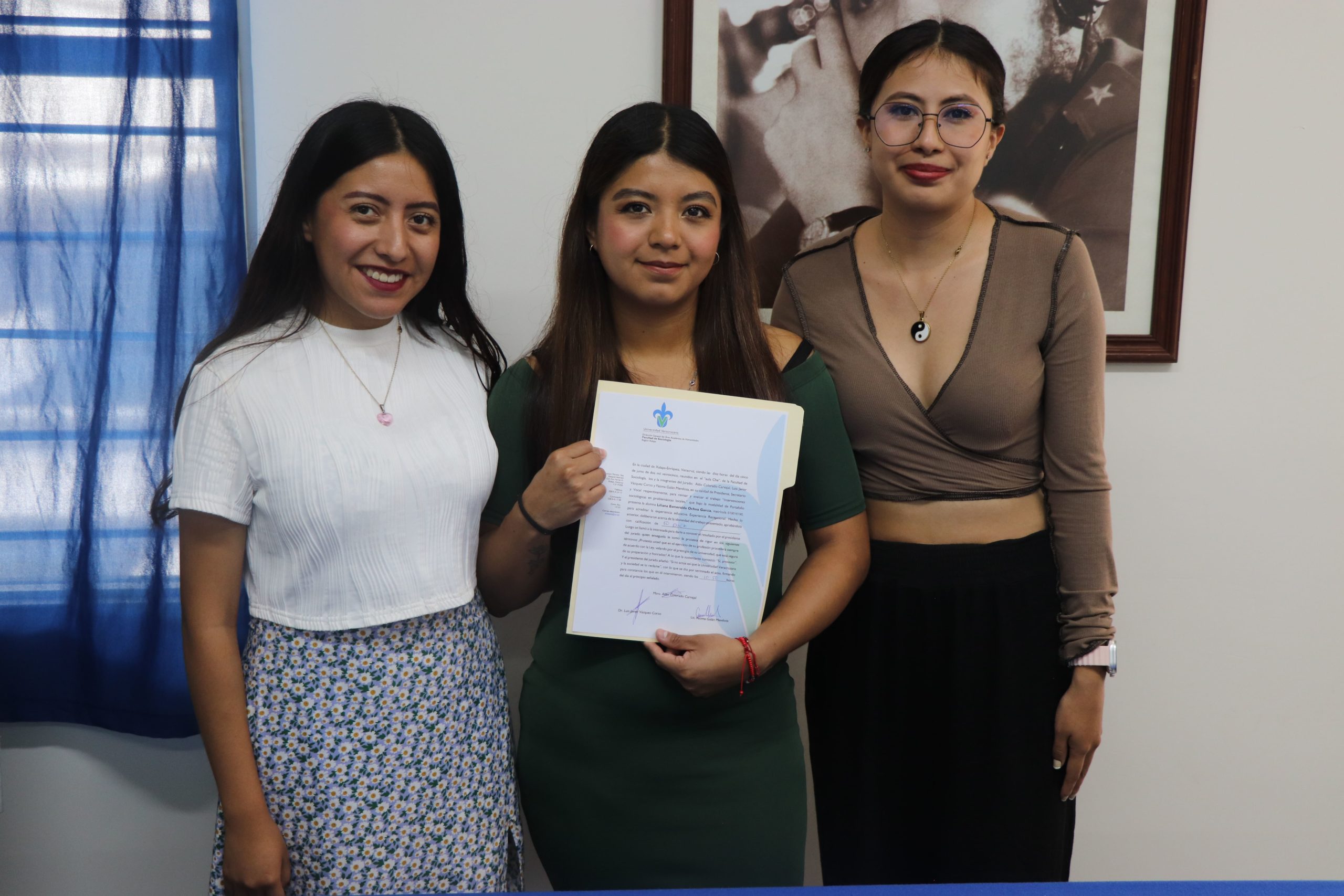 La Facultad de Sociología felicita a Liliana Esmeralda Ochoa García, por haber presentado el día 05 de junio de 2025 su examen de titulación en modalidad de Portafolio, titulado «Intervenciones sociológicas en problemáticas locales», presentado en la sala audiovisual el “Che” de la Facultad de Sociología. El jurado estuvo integrado por: Presidente, Mtro. Aldo Colorado Carvajal; Secretario, Dr. Luis Javier Vázquez Corzo; Vocal, Lic. Fátima Galán Mendoza.