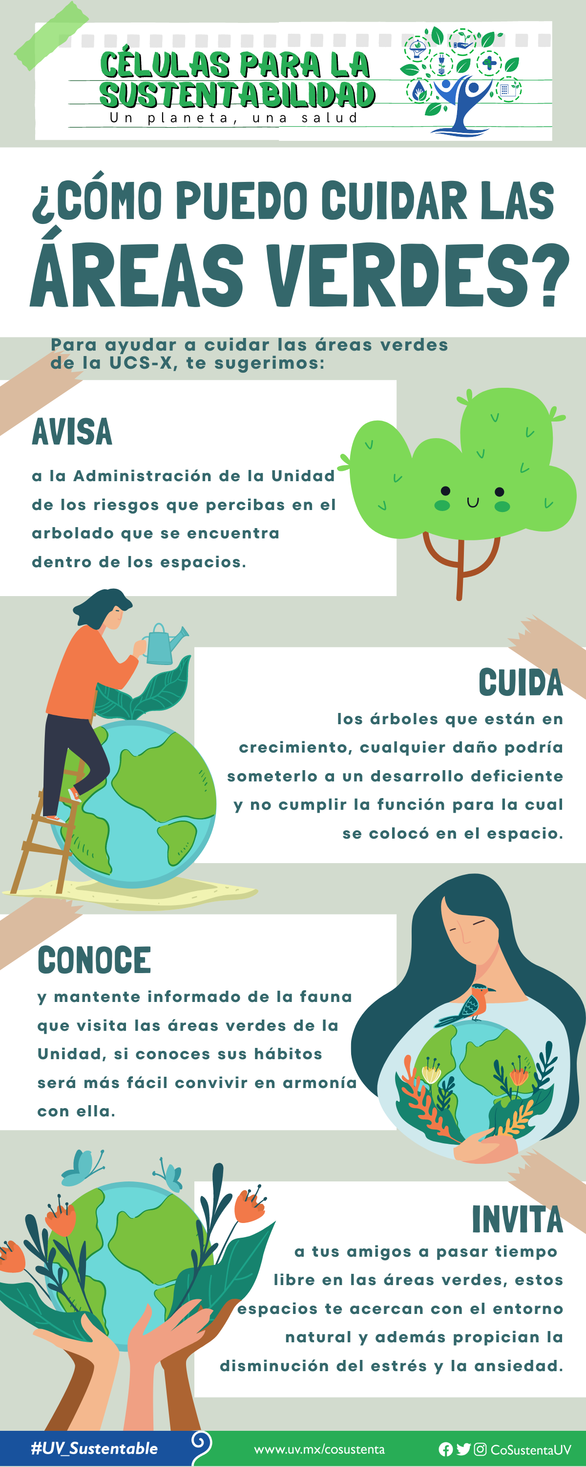 - Estrategia de comunicación con: 18 fichas del arbolado en la Unidad, cuatro infografías y un manual técnico