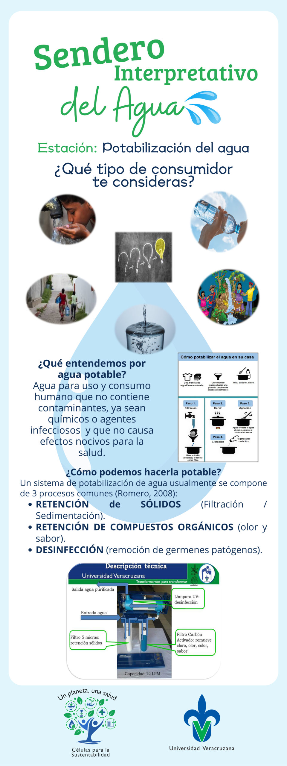 En el 2023, en el marco del proyecto “Células para Sustentabilidad”, se desarrolló el Sendero Interpretativo del Agua, que tiene como sede la Unidad de Ciencias de la Salud – Xalapa (UCS-X). Este sendero tiene como objetivo sensibilizar a la comunidad universitaria y sociedad en general, en temas de sustentabilidad sobre la gestión integral de los recursos hídricos. Esta dirigido a la comunidad universitaria, conformada por estudiantes, académicos y personal no docente, así como los usuarios de los servicios médicos brindados por la propia UCS-X. Para cada uno de ellos la visita al SIA representa una oportunidad de formación sobre el tema del agua en general y en lo particular la relación entre el usuario, el agua y su influencia sobre la salud.
