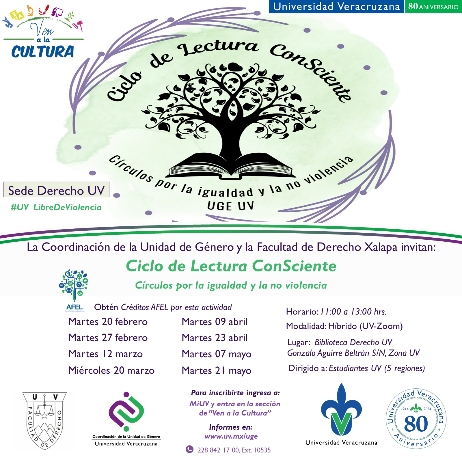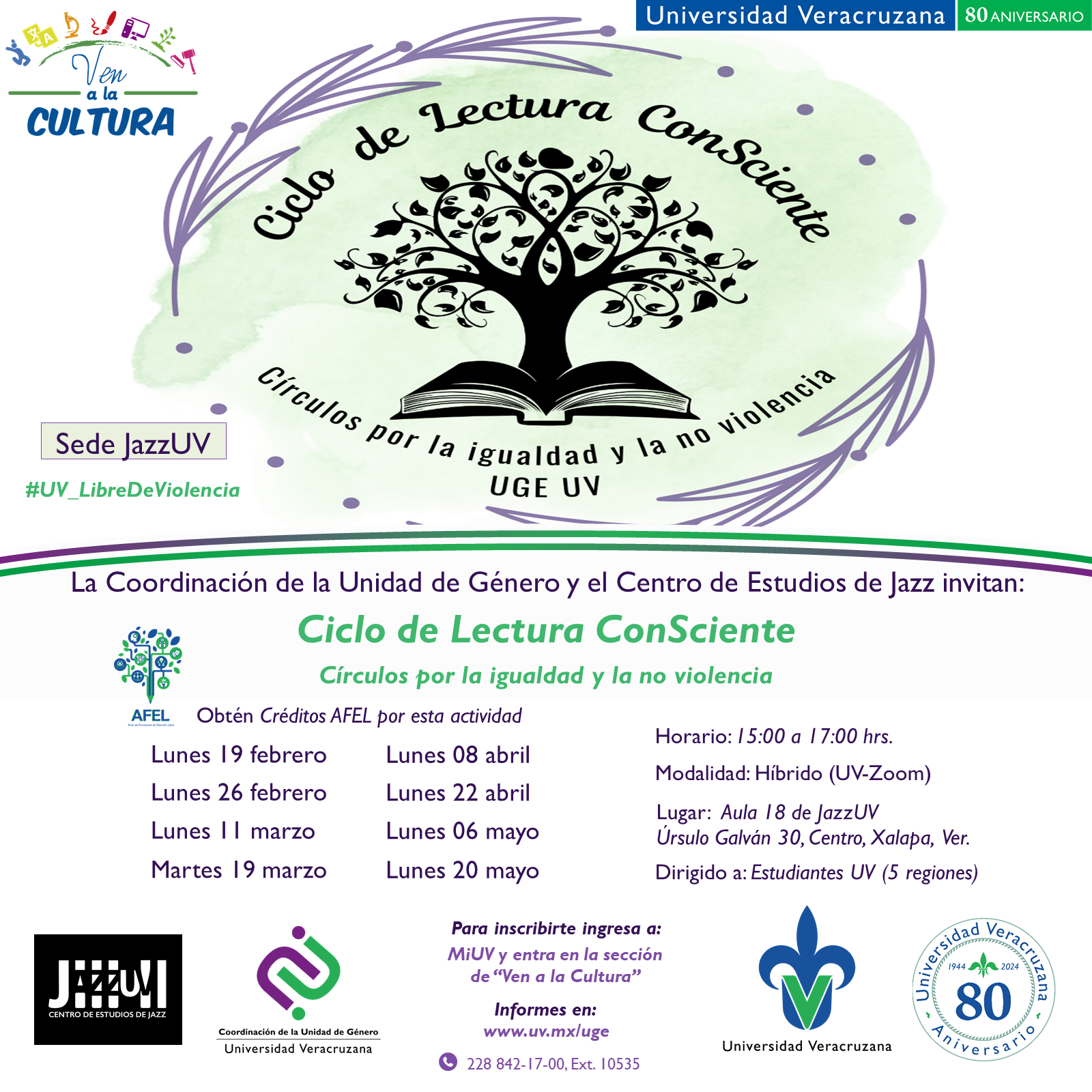Ciclo de Lectura ConSciente-Círculos por la igualdad y no violencia Estas son las fechas y el horario para la Sede JazzUV Estas son las fechas y el horario para la Sede Derecho UV