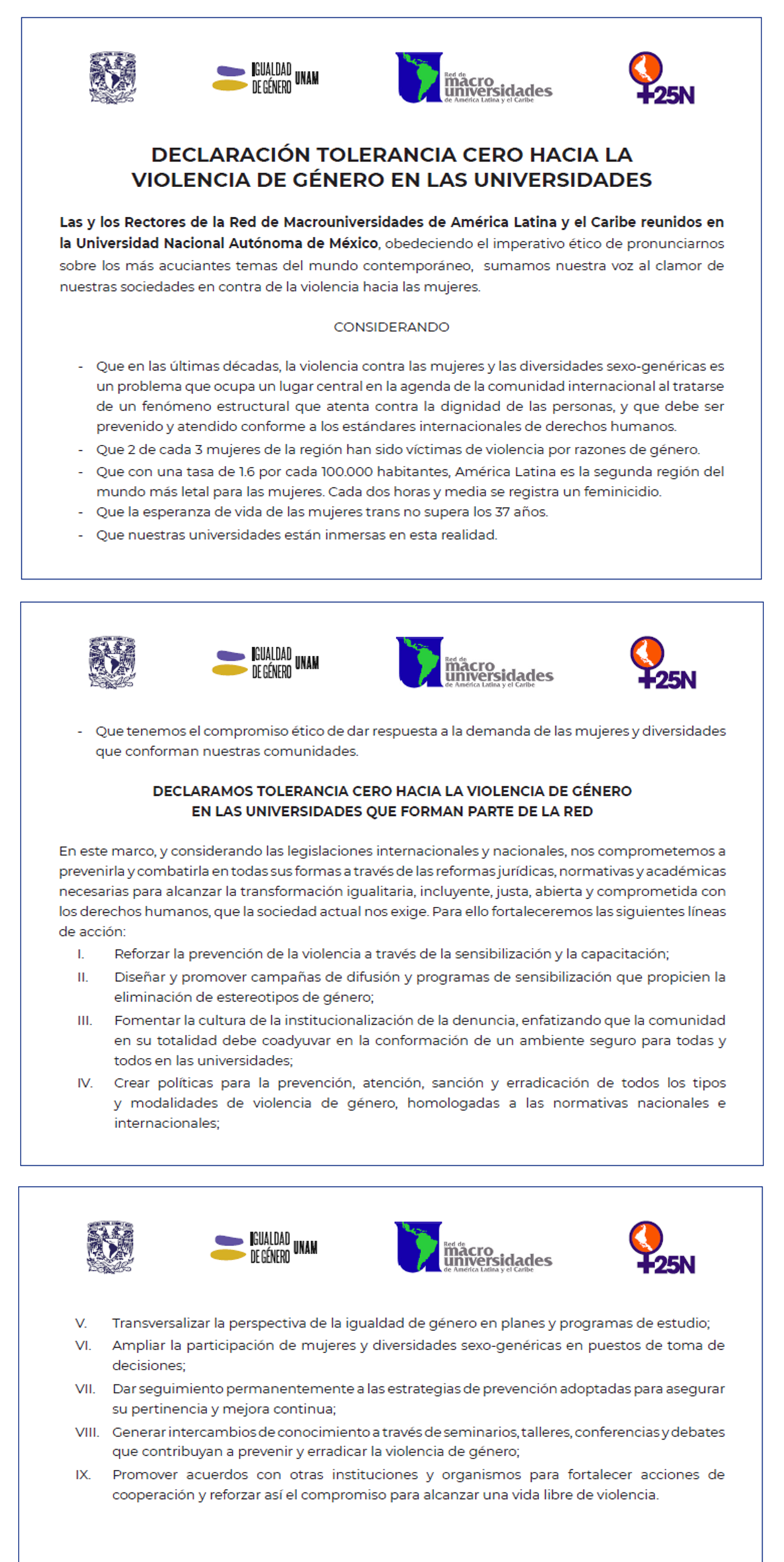 Declaratoria «Cero tolerancia a la violencia de género en las universidades».