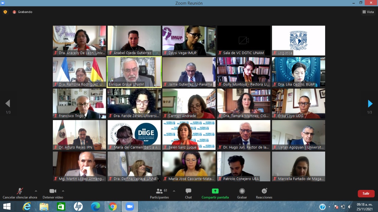 25/11/2021.-En el marco del Día Internacional de la Eliminación de la Violencia contra las Mujeres, la Universidad Nacional Autónoma de México, a través de su Coordinación para la Igualdad de Género, y la Red de Macrouniversidades de América Latina y el Caribe, convocaron a una ceremonia en la que las universidades integrantes signaron la Declaratoria «Cero tolerancia a la violencia de género en las universidades».