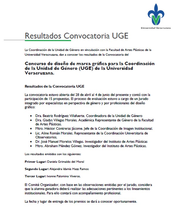 Resultados – Concurso de diseño de marca gráfica para la UGE Resultados de la Convocatoria UGE Descargar Convocatoria