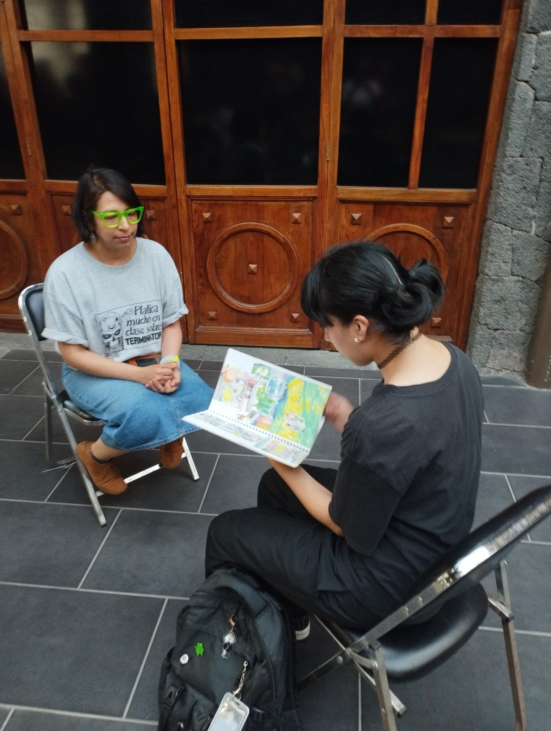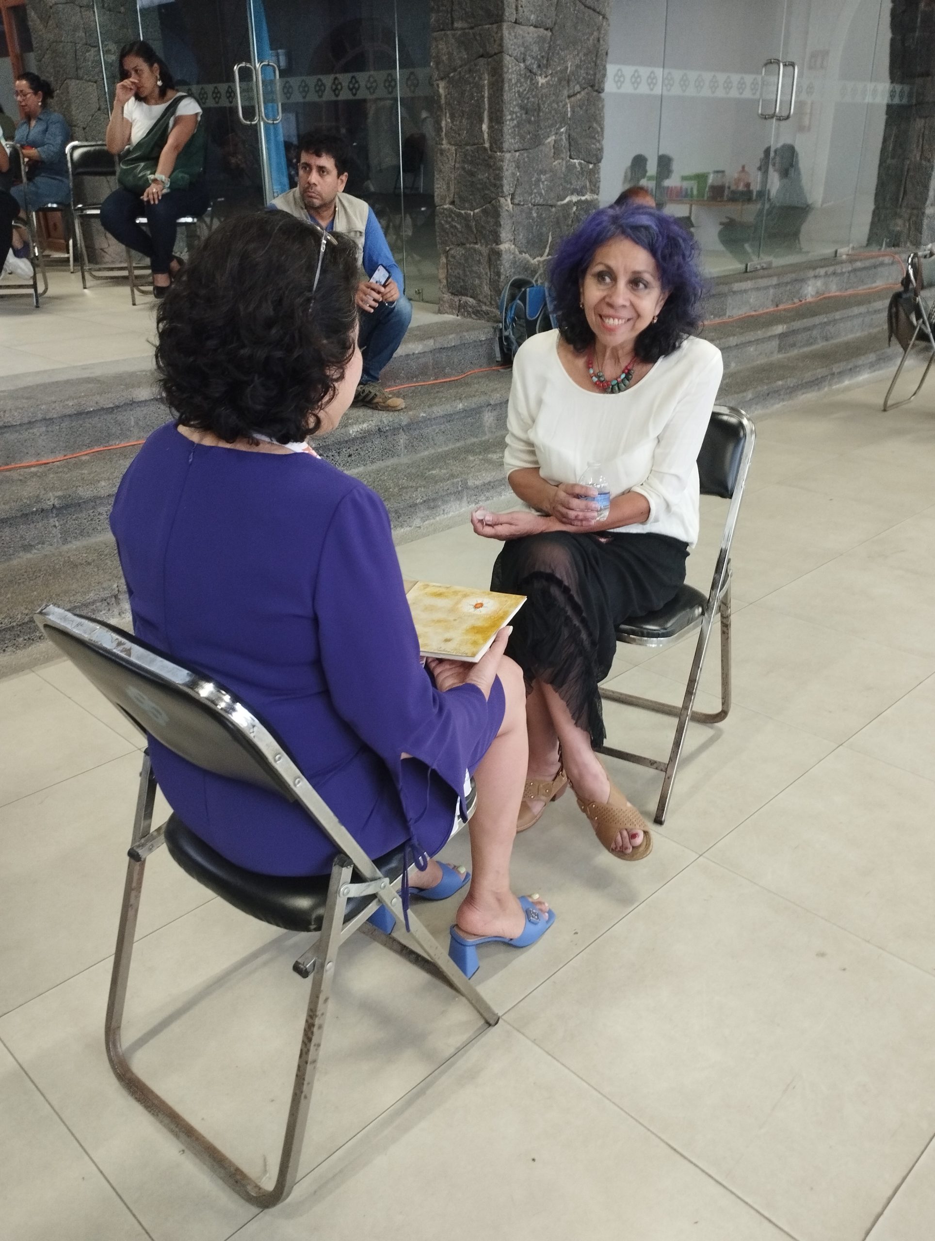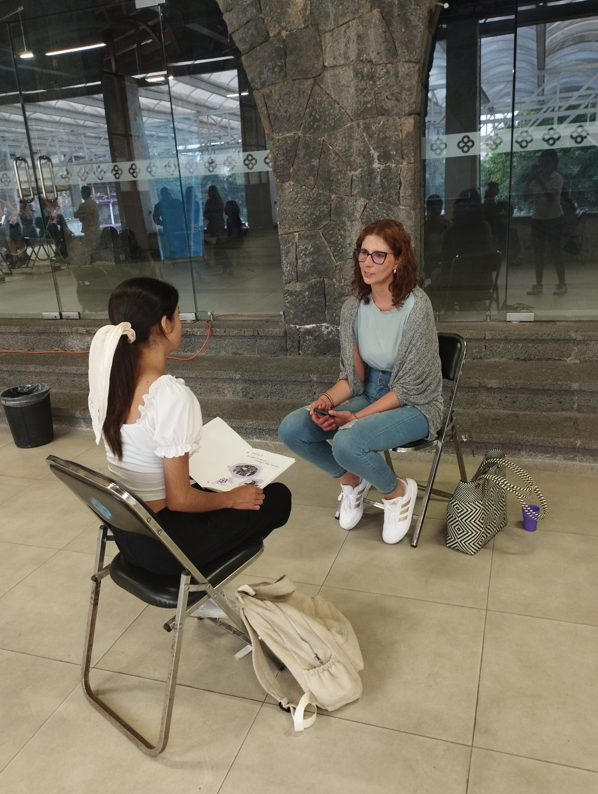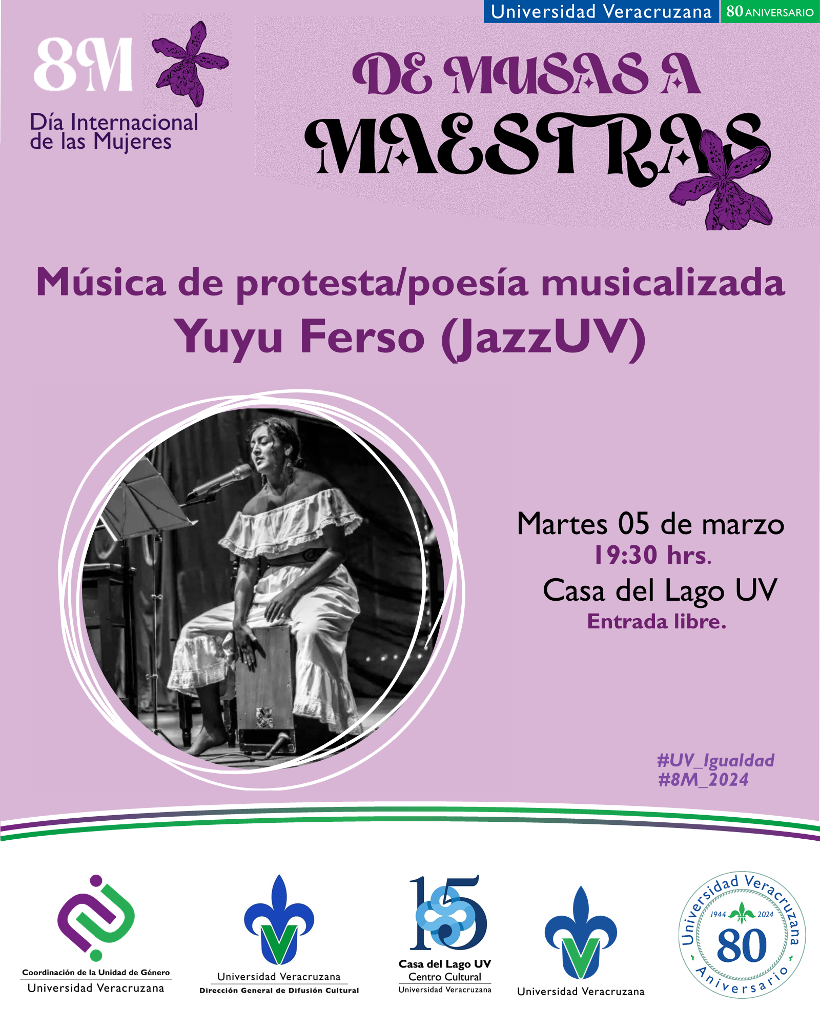Carlos Hugo Hermida Rosales Fotos: José Rujiro Hernández Temis 06/03/2024. Xalapa, Ver. Creadoras de diversas disciplinas integraron una Biblioteca Humana de Mujeres Artistas en el marco del evento “De musas a maestras. Por el reconocimiento de las mujeres en las artes”, organizado por la Coordinación de la Unidad de Género de la Universidad Veracruzana (UV), en conmemoración del Día Internacional de la Mujer. Las participantes fueron Anamar García y Emilia Chtereva, de la Orquesta Sinfónica de Xalapa (OSX); Arely León, de la Facultad de Letras Españolas; Atenea Castillo, de la Facultad de Artes Plásticas; Carolina Carvajal, diseñadora del Laboratorio X-Balam; Franchesca Filobello, de Tlen Huicani; Gabriela Gallegos y Xóchitl Gamboa del Ballet Folklórico y Guillermina Ortega, artista plástica. Además, se sumaron Leticia Velasco, de la Facultad de Danza; Mercedes Huerta, directora escénica; Patricia Ivison, del Coro UV, y Tania Hernández, de la Organización Teatral de esta casa de estudios (Orteuv). |