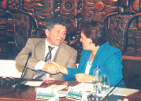 rector Víctor Arredondo con la senadora Noemí Guzmán.