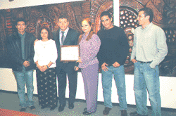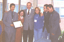 A su regreso de Washington, los tres estudiantes triunfadores y
