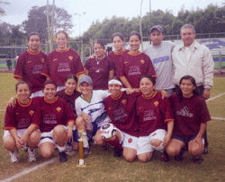 el equipo campeón: Carolina Plata, Fabiola Torres, Araceli