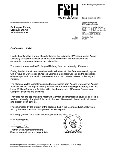 Felicita la Aachen University of Applied Sciences a estudiantes de la UV