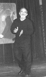 Con ilustraciones en las paredes como escenografía Carlos Marín