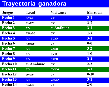 la UV a la liguilla de la Liga Mayor Universitaria de la FMF como
