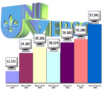 los dos primeros meses de 2004 nos reportan 57 mil 841 visitas.