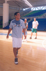 Entrevistado durante una de sus prácticas en el gimnasio de