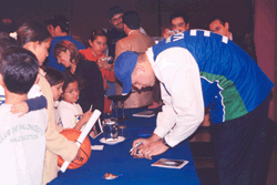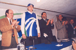 a los aficionados de Oklahoma en el 2000 junto al ahora jugador de