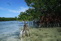 Las raíces de los mangles se encuentran parcialmente sumergidas