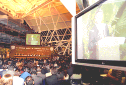 Ante los consejeros universitarios reunidos en el vestíbulo