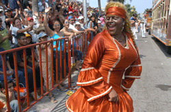 actores del carnaval, como las Bastoneras del 14, los comparseros,