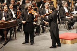 Hacia la parte complementaria de la velada, después de una brillante Rapsodia rumana número dos de Enesco, Lakatos con la orquesta y Capilla al frente de la misma abordaron Zigeunerweisen, la impresionante pieza que conocemos como “Aires gitanos” del español Pablo de Sarasate. Si la secuencia de bellas melodías es conmovedora en su primera sección, hacia el allegro final la filigrana se apodera de la pieza. Lakatos tomó este fragmento a una velocidad de vértigo, y la orquesta le secundó en una admirable demostración de agilidad. Cualquier otro conjunto orquestal menos capacitado seguramente habría sufrido un desbarre ante aquella endemoniada rapidez.