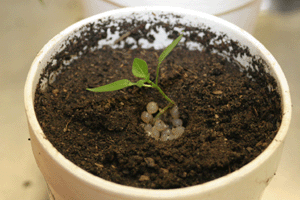 Luego, se colocan 10 grs. de inoculante por planta junto a las raíces. |